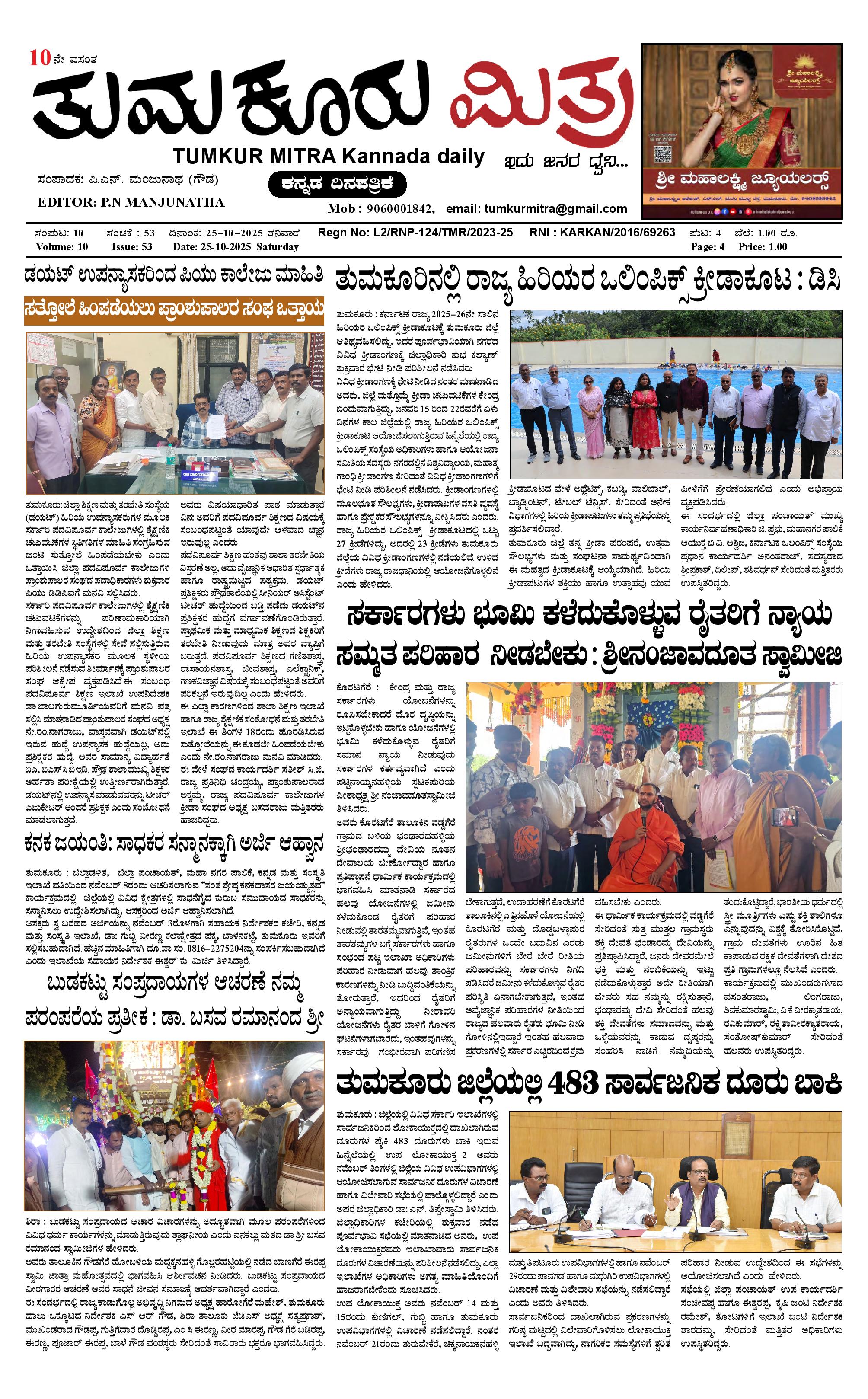 ತುಮಕೂರು ಮಿತ್ರ ಕನ್ನಡ ದಿನಪತ್ರಿಕೆ October 25, 2025 << First << 1 >> Last >> Page 1Page 2Page 3Page 4 × ತುಮಕೂರು ಮಿತ್ರ ಕನ್ನಡ ದಿನಪತ್ರಿಕೆ TUMKUR MITRA 25-10-25-page-001TUMKUR MITRA 25-10-25-page-002TUMKUR MITRA 25-10-25-page-003TUMKUR MITRA 25-10-25-page-004 << First << 1 >> Last >> TUMKUR MITRA 25-10-25-page-001TUMKUR MITRA 25-10-25-page-002TUMKUR MITRA 25-10-25-page-003TUMKUR MITRA 25-10-25-page-004 TUMKUR MITRA 25-10-25-page-001