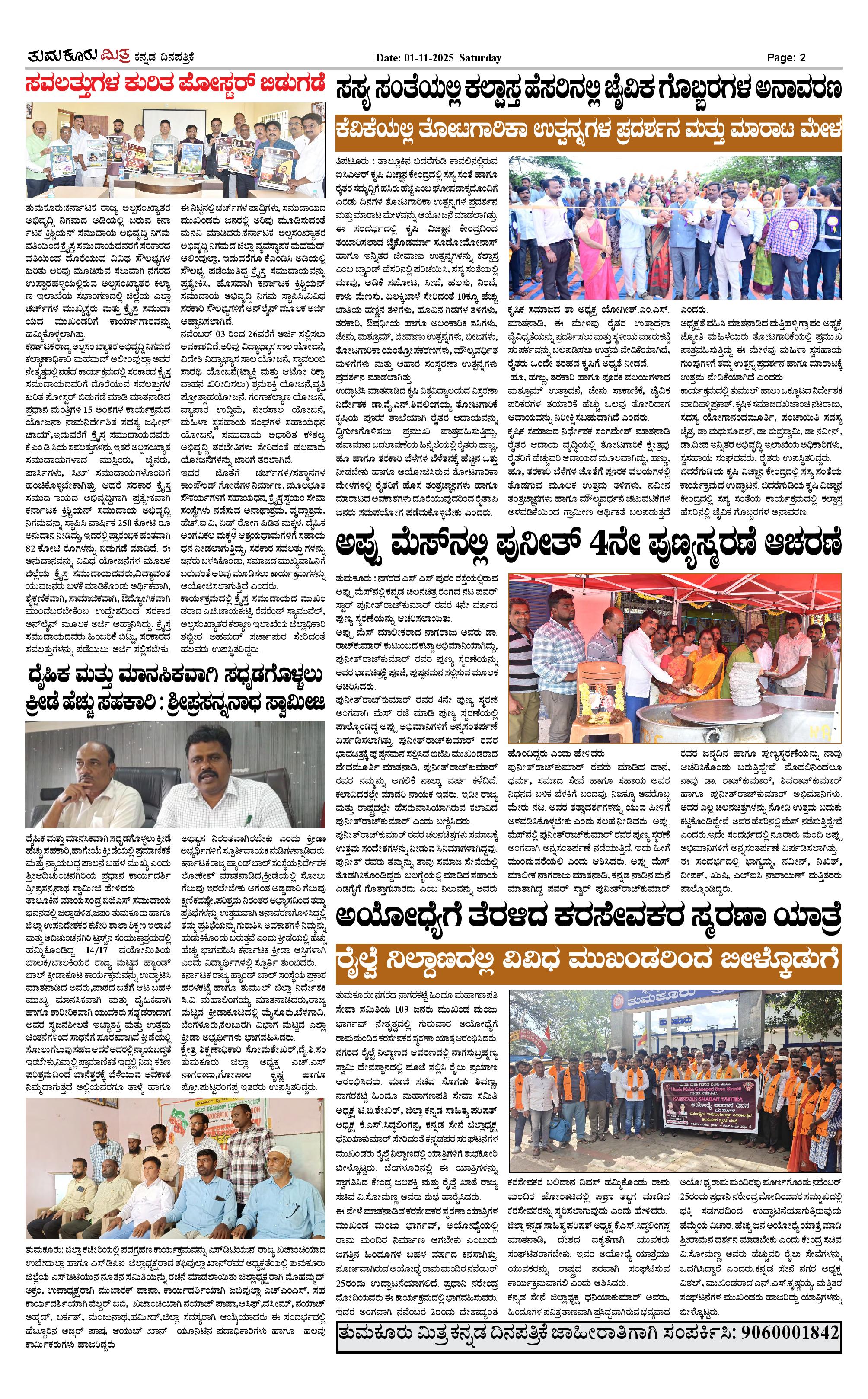 ತುಮಕೂರು ಮಿತ್ರ ಕನ್ನಡ ದಿನಪತ್ರಿಕೆ Page: 2 November 01, 2025 << First << 2 >> Last >> Page 1Page 2Page 3Page 4 × ತುಮಕೂರು ಮಿತ್ರ ಕನ್ನಡ ದಿನಪತ್ರಿಕೆ TUMKUR MITRA 01-11-25-page-001TUMKUR MITRA 01-11-25-page-002TUMKUR MITRA 01-11-25-page-003TUMKUR MITRA 01-11-25-page-004 << First << 2 >> Last >> TUMKUR MITRA 01-11-25-page-001TUMKUR MITRA 01-11-25-page-002TUMKUR MITRA 01-11-25-page-003TUMKUR MITRA 01-11-25-page-004 TUMKUR MITRA 01-11-25-page-002