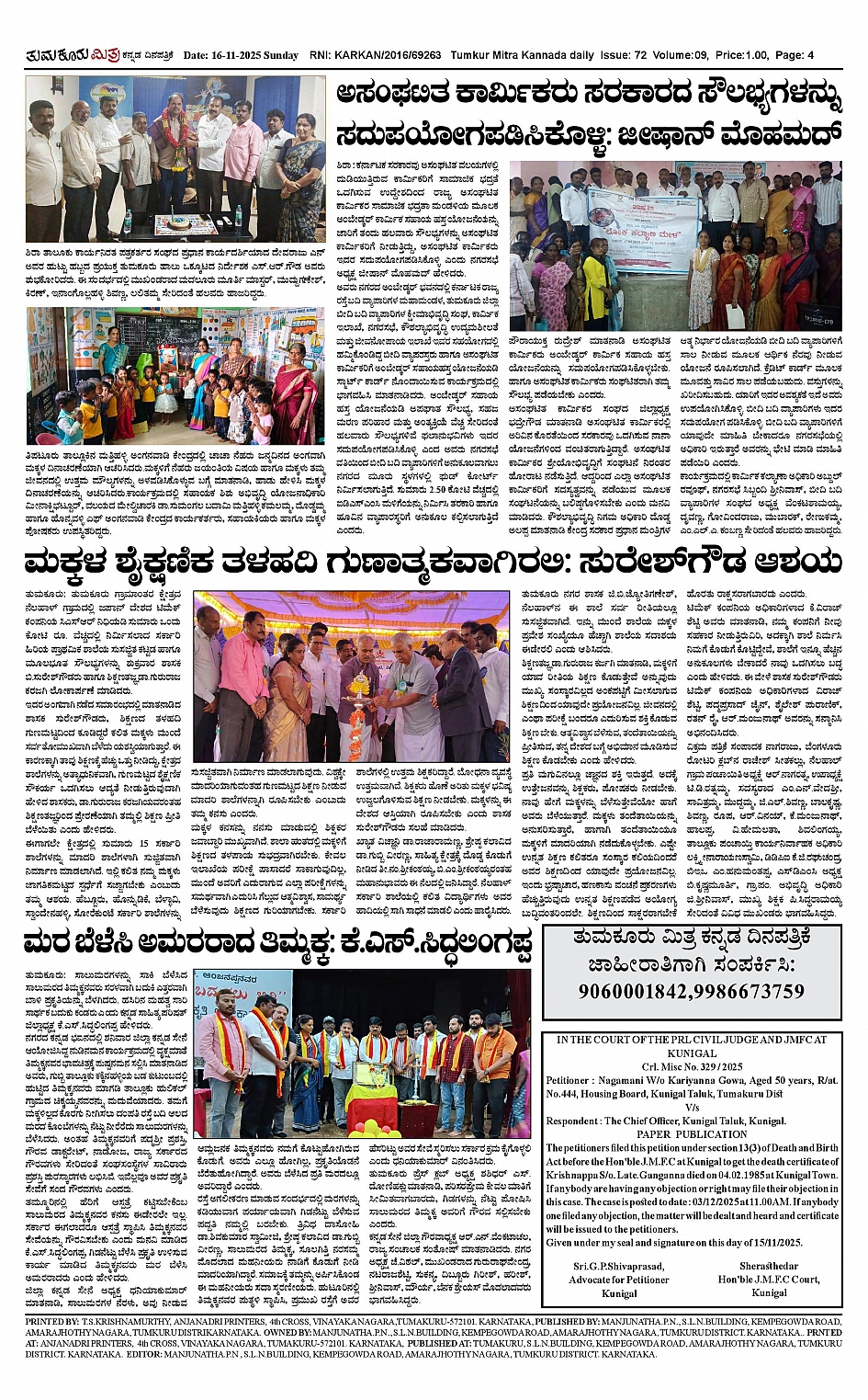 ತುಮಕೂರು ಮಿತ್ರ ಕನ್ನಡ ದಿನಪತ್ರಿಕೆ Page: 4 November 16, 2025 << First << 4 >> Last >> Page 1Page 2Page 3Page 4 × ತುಮಕೂರು ಮಿತ್ರ ಕನ್ನಡ ದಿನಪತ್ರಿಕೆ TUMKUR MITRA 16-11-25-page-001TUMKUR MITRA 16-11-25-page-002TUMKUR MITRA 16-11-25-page-003TUMKUR MITRA 16-11-25-page-004 << First << 4 >> Last >> TUMKUR MITRA 16-11-25-page-001TUMKUR MITRA 16-11-25-page-002TUMKUR MITRA 16-11-25-page-003TUMKUR MITRA 16-11-25-page-004 TUMKUR MITRA 16-11-25-page-004