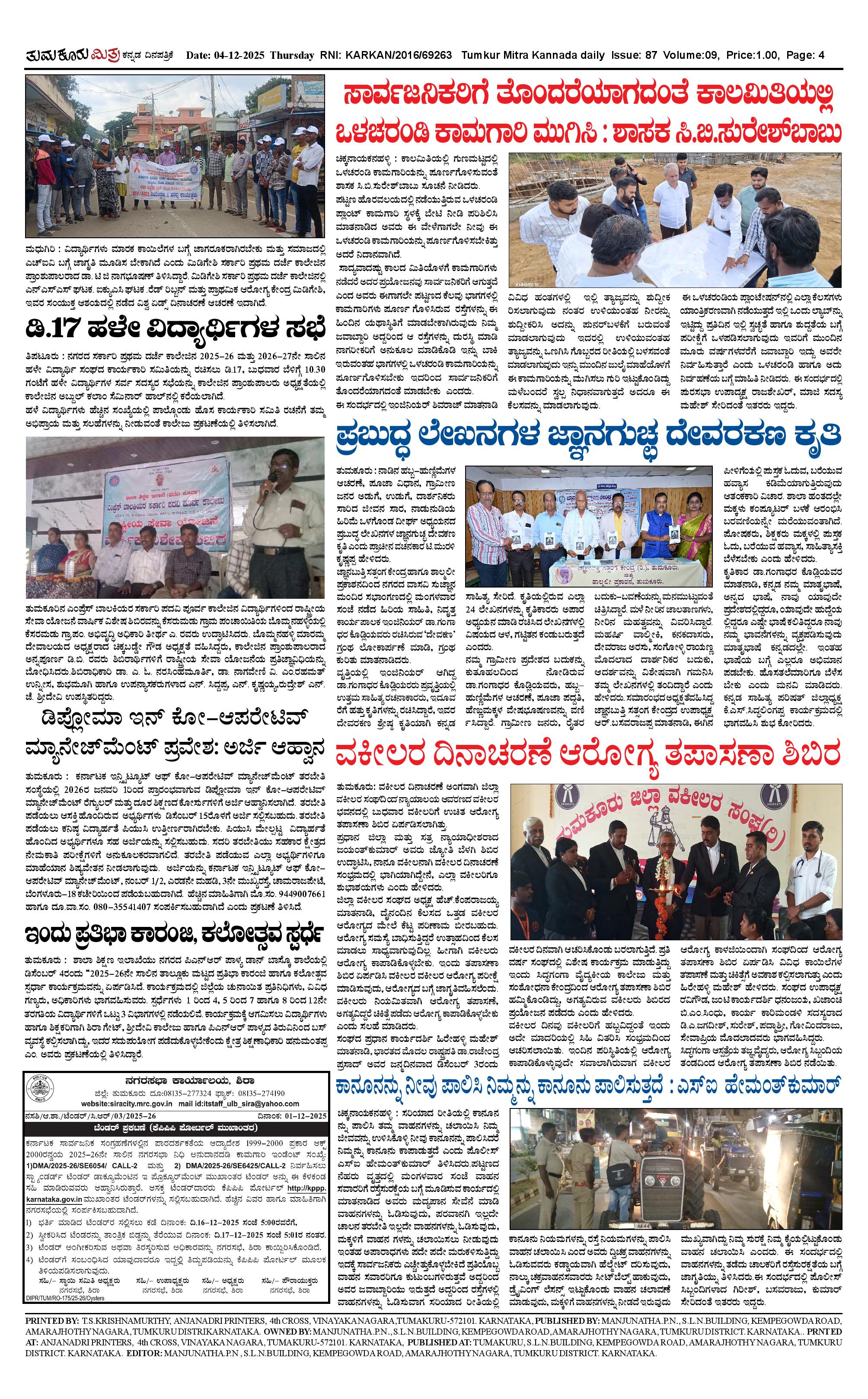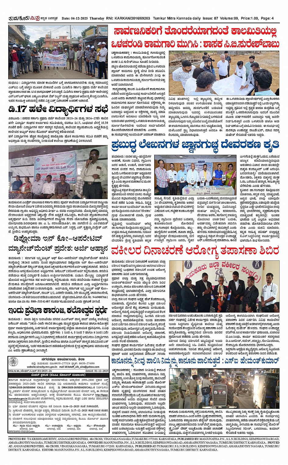 ತುಮಕೂರು ಮಿತ್ರ ಕನ್ನಡ ದಿನಪತ್ರಿಕೆ Page: 4 December 04, 2025 << First << 4 >> Last >> Page 1Page 2Page 3Page 4 × ತುಮಕೂರು ಮಿತ್ರ ಕನ್ನಡ ದಿನಪತ್ರಿಕೆ TUMKUR MITRA 04-12-25-page-001TUMKUR MITRA 04-12-25-page-002TUMKUR MITRA 04-12-25-page-003TUMKUR MITRA 04-12-25-page-004 << First << 4 >> Last >> TUMKUR MITRA 04-12-25-page-001TUMKUR MITRA 04-12-25-page-002TUMKUR MITRA 04-12-25-page-003TUMKUR MITRA 04-12-25-page-004 TUMKUR MITRA 04-12-25-page-004