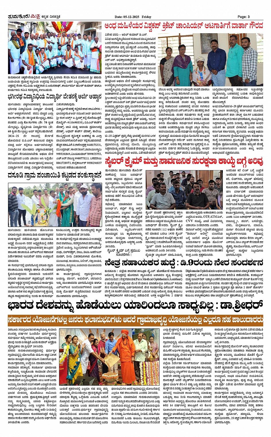 ತುಮಕೂರು ಮಿತ್ರ ಕನ್ನಡ ದಿನಪತ್ರಿಕೆ Page: 3 December 05, 2025 << First << 3 >> Last >> Page 1Page 2Page 3Page 4 × ತುಮಕೂರು ಮಿತ್ರ ಕನ್ನಡ ದಿನಪತ್ರಿಕೆ TUMKUR MITRA 05-12-25-page-001TUMKUR MITRA 05-12-25-page-002TUMKUR MITRA 05-12-25-page-003TUMKUR MITRA 05-12-25-page-004 << First << 3 >> Last >> TUMKUR MITRA 05-12-25-page-001TUMKUR MITRA 05-12-25-page-002TUMKUR MITRA 05-12-25-page-003TUMKUR MITRA 05-12-25-page-004 TUMKUR MITRA 05-12-25-page-003