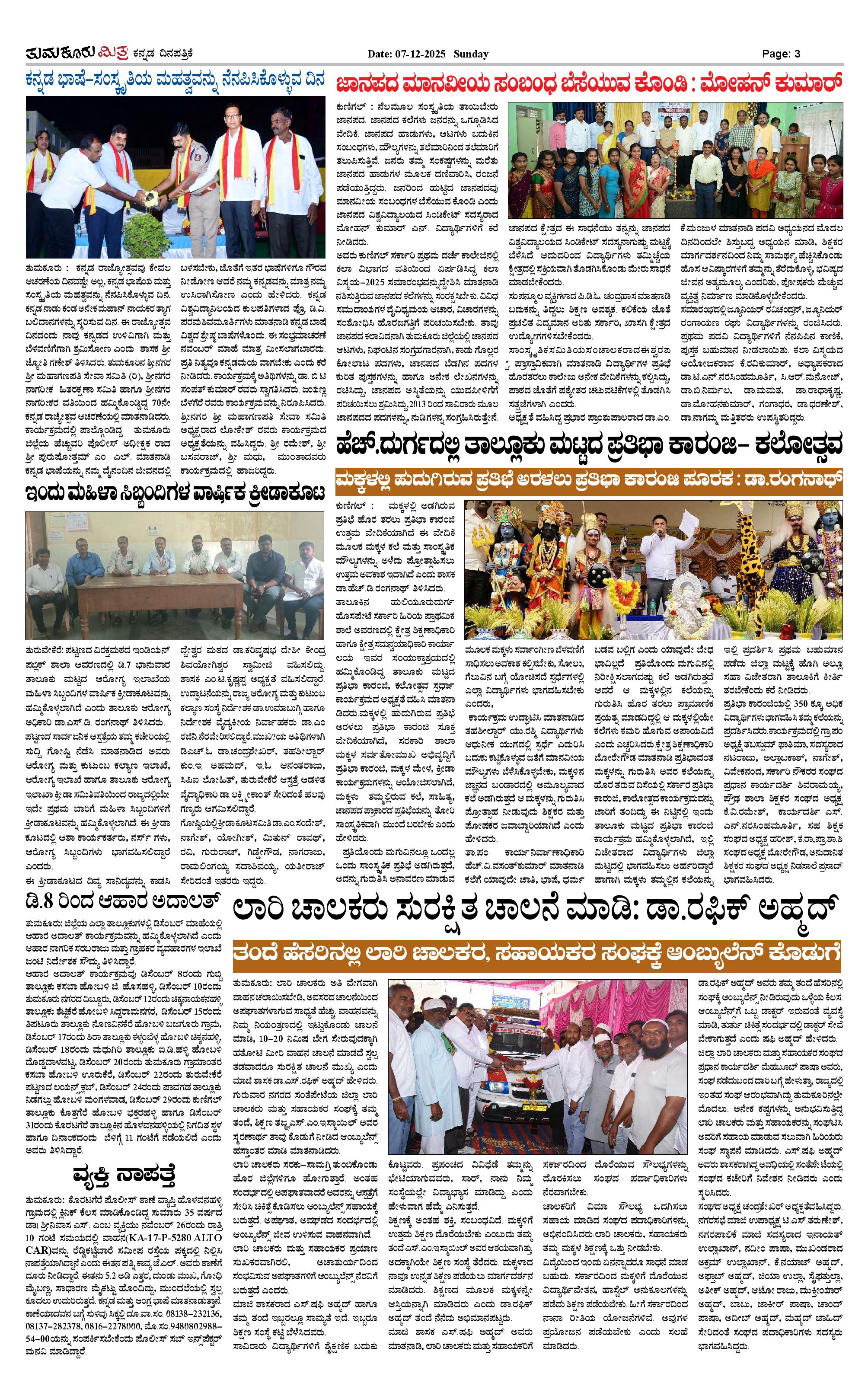 ತುಮಕೂರು ಮಿತ್ರ ಕನ್ನಡ ದಿನಪತ್ರಿಕೆ Page: 3 December 07, 2025 << First << 3 >> Last >> Page 1Page 2Page 3Page 4 × ತುಮಕೂರು ಮಿತ್ರ ಕನ್ನಡ ದಿನಪತ್ರಿಕೆ TUMKUR MITRA 07-12-25-page-001TUMKUR MITRA 07-12-25-page-002TUMKUR MITRA 07-12-25-page-003TUMKUR MITRA 07-12-25-page-004 << First << 3 >> Last >> TUMKUR MITRA 07-12-25-page-001TUMKUR MITRA 07-12-25-page-002TUMKUR MITRA 07-12-25-page-003TUMKUR MITRA 07-12-25-page-004 TUMKUR MITRA 07-12-25-page-003