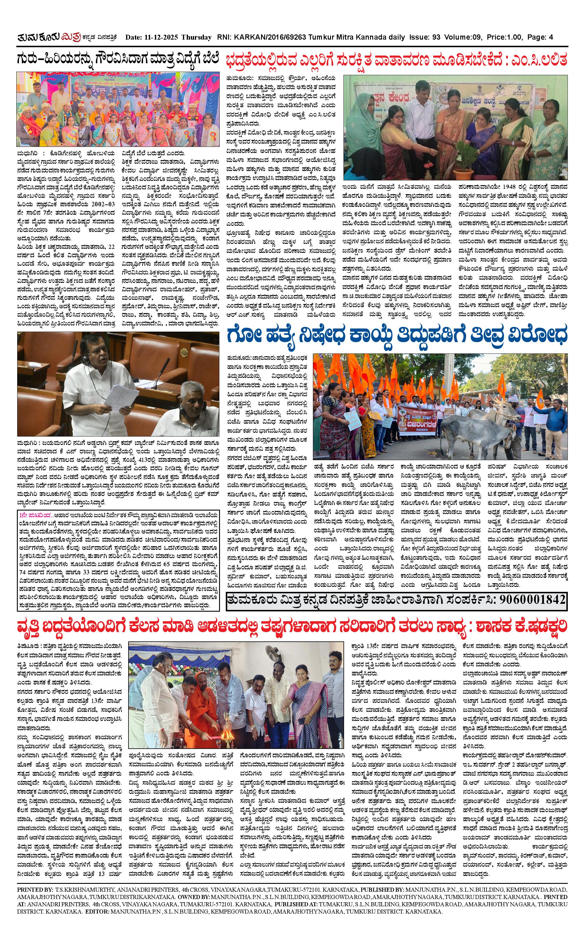 ತುಮಕೂರು ಮಿತ್ರ ಕನ್ನಡ ದಿನಪತ್ರಿಕೆ Page: 4 December 11, 2025 << First << 4 >> Last >> Page 1Page 2Page 3Page 4 × ತುಮಕೂರು ಮಿತ್ರ ಕನ್ನಡ ದಿನಪತ್ರಿಕೆ TUMKUR MITRA 11-12-25-page-001TUMKUR MITRA 11-12-25-page-002TUMKUR MITRA 11-12-25-page-003TUMKUR MITRA 11-12-25-page-004 << First << 4 >> Last >> TUMKUR MITRA 11-12-25-page-001TUMKUR MITRA 11-12-25-page-002TUMKUR MITRA 11-12-25-page-003TUMKUR MITRA 11-12-25-page-004 TUMKUR MITRA 11-12-25-page-004