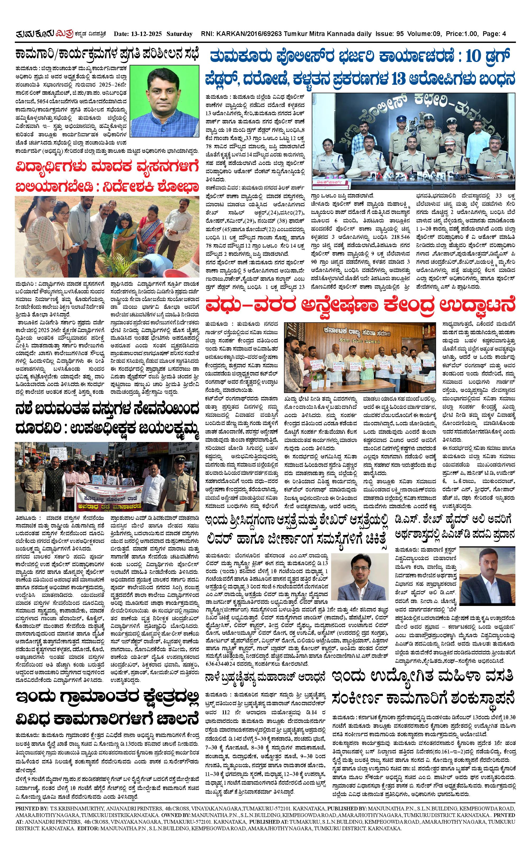 ತುಮಕೂರು ಮಿತ್ರ ಕನ್ನಡ ದಿನಪತ್ರಿಕೆ Page: 4 December 13, 2025 << First << 4 >> Last >> Page 1Page 2Page 3Page 4 × ತುಮಕೂರು ಮಿತ್ರ ಕನ್ನಡ ದಿನಪತ್ರಿಕೆ TUMKUR MITRA 13-12-25-page-001TUMKUR MITRA 13-12-25-page-002TUMKUR MITRA 13-12-25-page-003TUMKUR MITRA 13-12-25-page-004 << First << 4 >> Last >> TUMKUR MITRA 13-12-25-page-001TUMKUR MITRA 13-12-25-page-002TUMKUR MITRA 13-12-25-page-003TUMKUR MITRA 13-12-25-page-004 TUMKUR MITRA 13-12-25-page-004