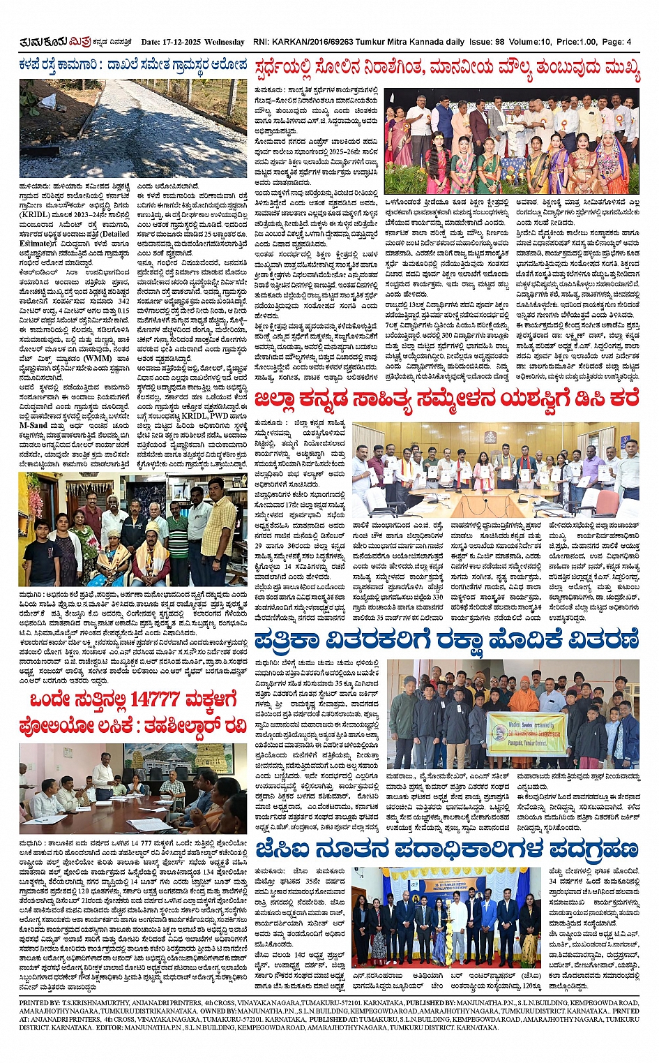 ತುಮಕೂರು ಮಿತ್ರ ಕನ್ನಡ ದಿನಪತ್ರಿಕೆ Page: 4 December 17, 2025 << First << 4 >> Last >> Page 1Page 2Page 3Page 4 × ತುಮಕೂರು ಮಿತ್ರ ಕನ್ನಡ ದಿನಪತ್ರಿಕೆ TUMKUR MITRA 17-12-25-page-001TUMKUR MITRA 17-12-25-page-002TUMKUR MITRA 17-12-25-page-003TUMKUR MITRA 17-12-25-page-004 << First << 4 >> Last >> TUMKUR MITRA 17-12-25-page-001TUMKUR MITRA 17-12-25-page-002TUMKUR MITRA 17-12-25-page-003TUMKUR MITRA 17-12-25-page-004 TUMKUR MITRA 17-12-25-page-004