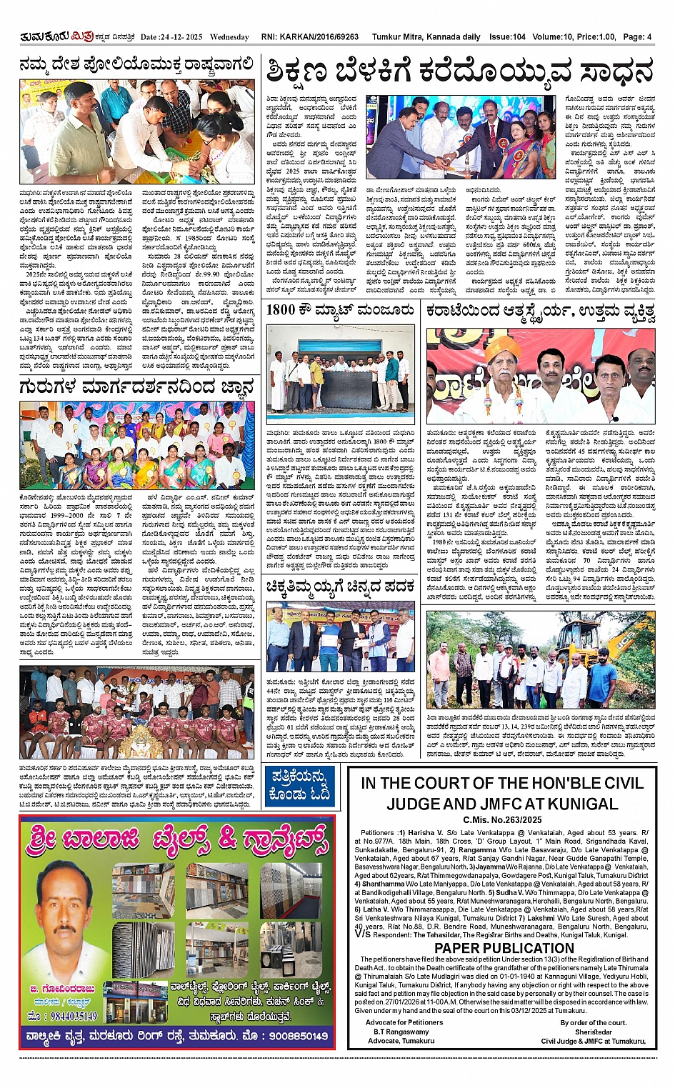 ತುಮಕೂರು ಮಿತ್ರ ಕನ್ನಡ ದಿನಪತ್ರಿಕೆ Page: 4 December 24, 2025 << First << 4 >> Last >> Page 1Page 2Page 3Page 4 × ತುಮಕೂರು ಮಿತ್ರ ಕನ್ನಡ ದಿನಪತ್ರಿಕೆ 1-page-0012-page-0013-page-0014 (1)-page-001 << First << 4 >> Last >> 1-page-0012-page-0013-page-0014 (1)-page-001 4 (1)-page-001