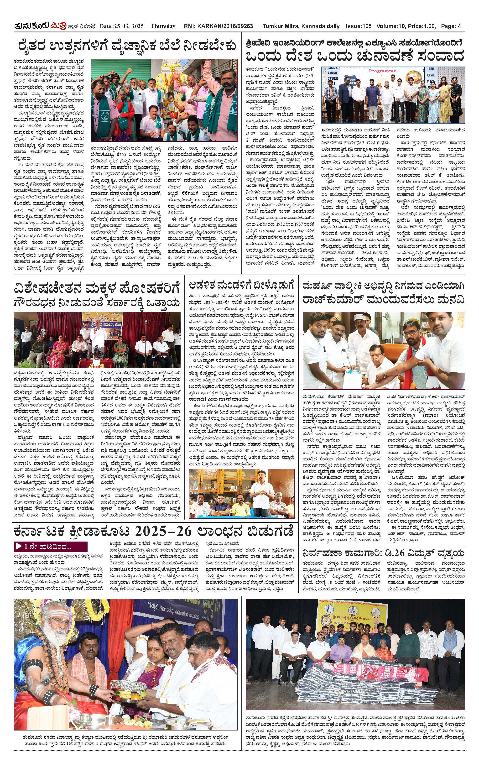 ತುಮಕೂರು ಮಿತ್ರ ಕನ್ನಡ ದಿನಪತ್ರಿಕೆ Page: 4 December 25, 2025 << First << 4 >> Last >> Page 1Page 2Page 3Page 4 × ತುಮಕೂರು ಮಿತ್ರ ಕನ್ನಡ ದಿನಪತ್ರಿಕೆ 1-page-0012-page-0013-page-0014-page-001 << First << 4 >> Last >> 1-page-0012-page-0013-page-0014-page-001 4-page-001