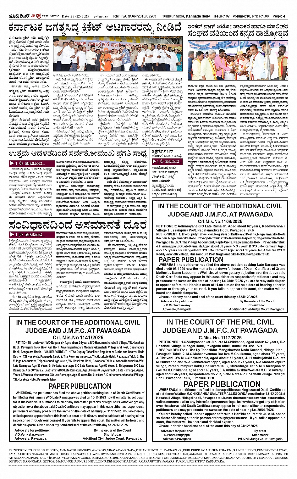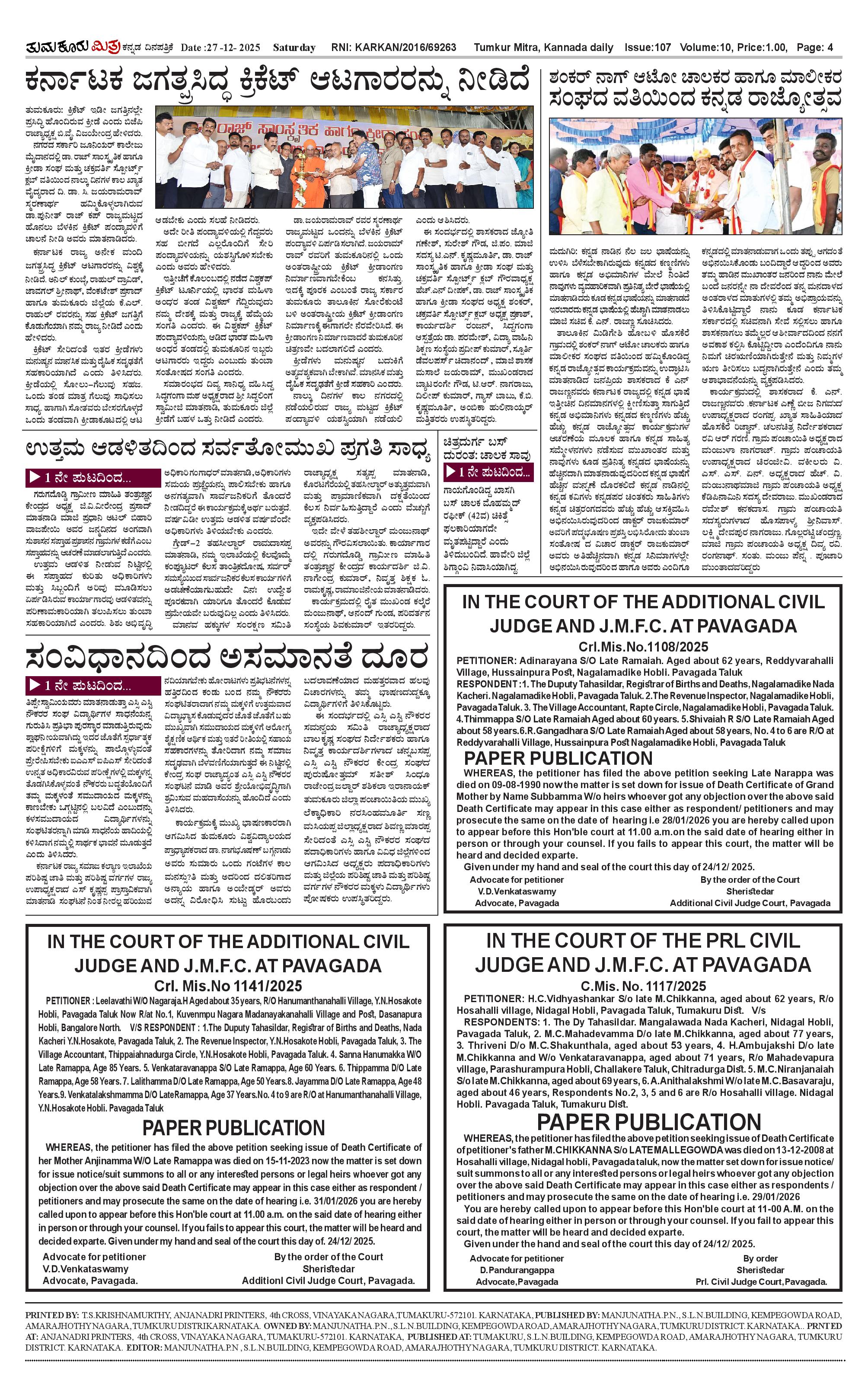 ತುಮಕೂರು ಮಿತ್ರ ಕನ್ನಡ ದಿನಪತ್ರಿಕೆ Page: 4 December 27, 2025 << First << 4 >> Last >> Page 1Page 2Page 3Page 4 × ತುಮಕೂರು ಮಿತ್ರ ಕನ್ನಡ ದಿನಪತ್ರಿಕೆ 1-page-0012-page-0013-page-0014 (1)-page-001 << First << 4 >> Last >> 1-page-0012-page-0013-page-0014 (1)-page-001 4 (1)-page-001