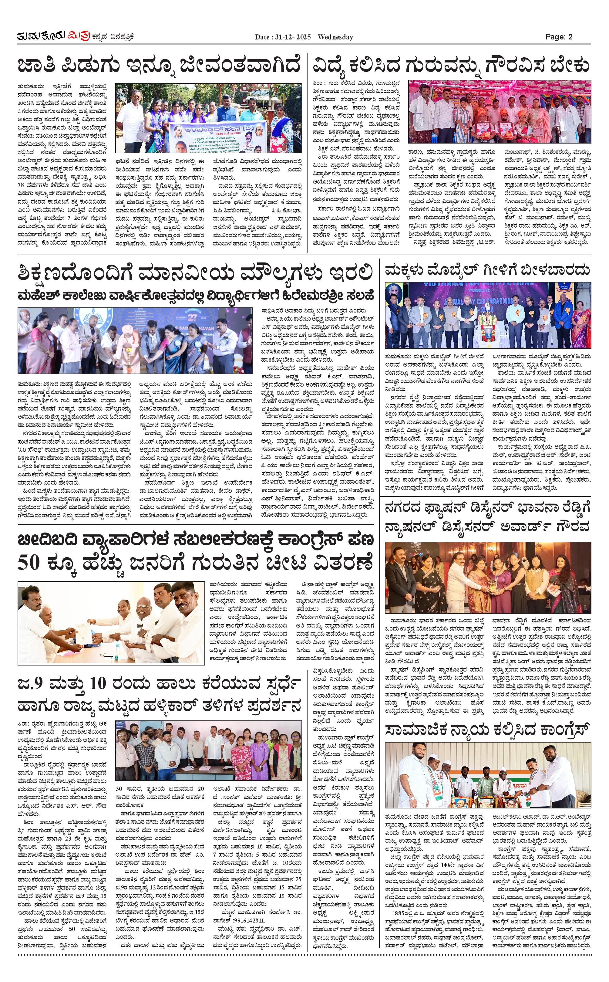 ತುಮಕೂರು ಮಿತ್ರ ಕನ್ನಡ ದಿನಪತ್ರಿಕೆ Page: 2 December 31, 2025 << First << 2 >> Last >> Page 1Page 2Page 3Page 4 × ತುಮಕೂರು ಮಿತ್ರ ಕನ್ನಡ ದಿನಪತ್ರಿಕೆ 1-page-0012-page-0013-page-0014-page-001 << First << 2 >> Last >> 1-page-0012-page-0013-page-0014-page-001 2-page-001