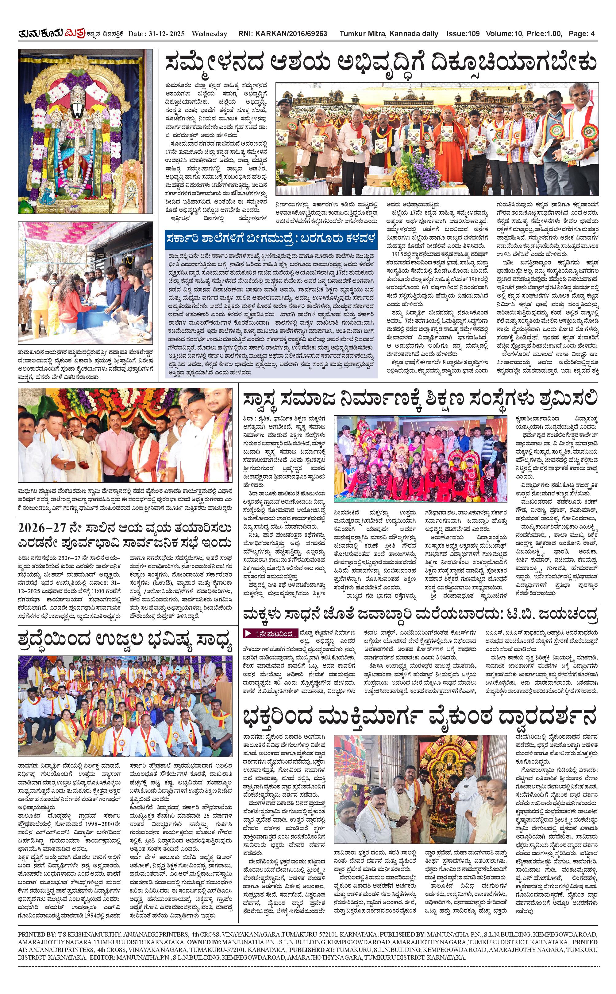 ತುಮಕೂರು ಮಿತ್ರ ಕನ್ನಡ ದಿನಪತ್ರಿಕೆ Page: 4 December 31, 2025 << First << 4 >> Last >> Page 1Page 2Page 3Page 4 × ತುಮಕೂರು ಮಿತ್ರ ಕನ್ನಡ ದಿನಪತ್ರಿಕೆ 1-page-0012-page-0013-page-0014-page-001 << First << 4 >> Last >> 1-page-0012-page-0013-page-0014-page-001 4-page-001