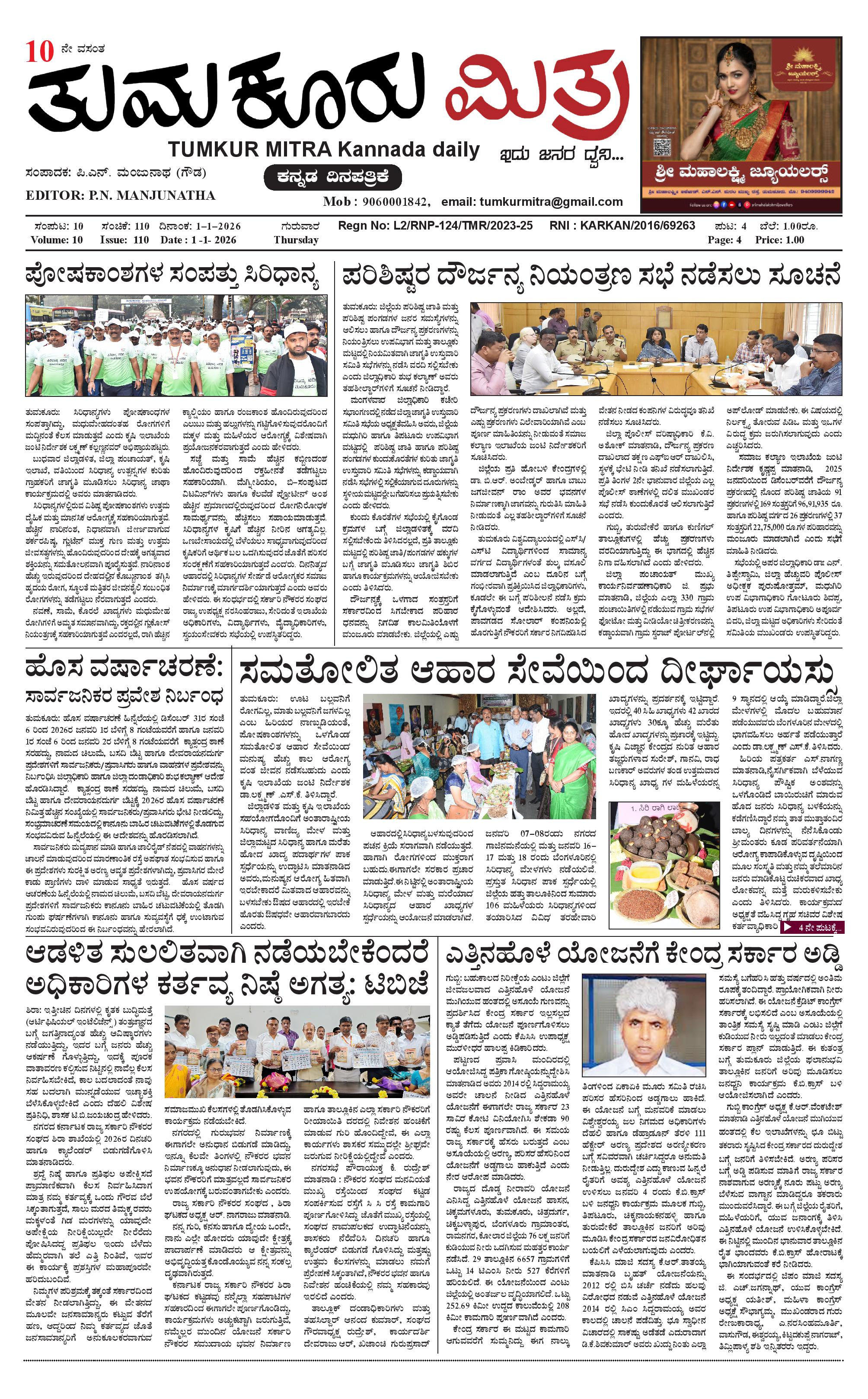 ತುಮಕೂರು ಮಿತ್ರ ಕನ್ನಡ ದಿನಪತ್ರಿಕೆ January 01, 2026 << First << 1 >> Last >> Page 1Page 2Page 3Page 4 × ತುಮಕೂರು ಮಿತ್ರ ಕನ್ನಡ ದಿನಪತ್ರಿಕೆ 1 (1)-page-0012-page-0013-page-0014-page-001 << First << 1 >> Last >> 1 (1)-page-0012-page-0013-page-0014-page-001 1 (1)-page-001