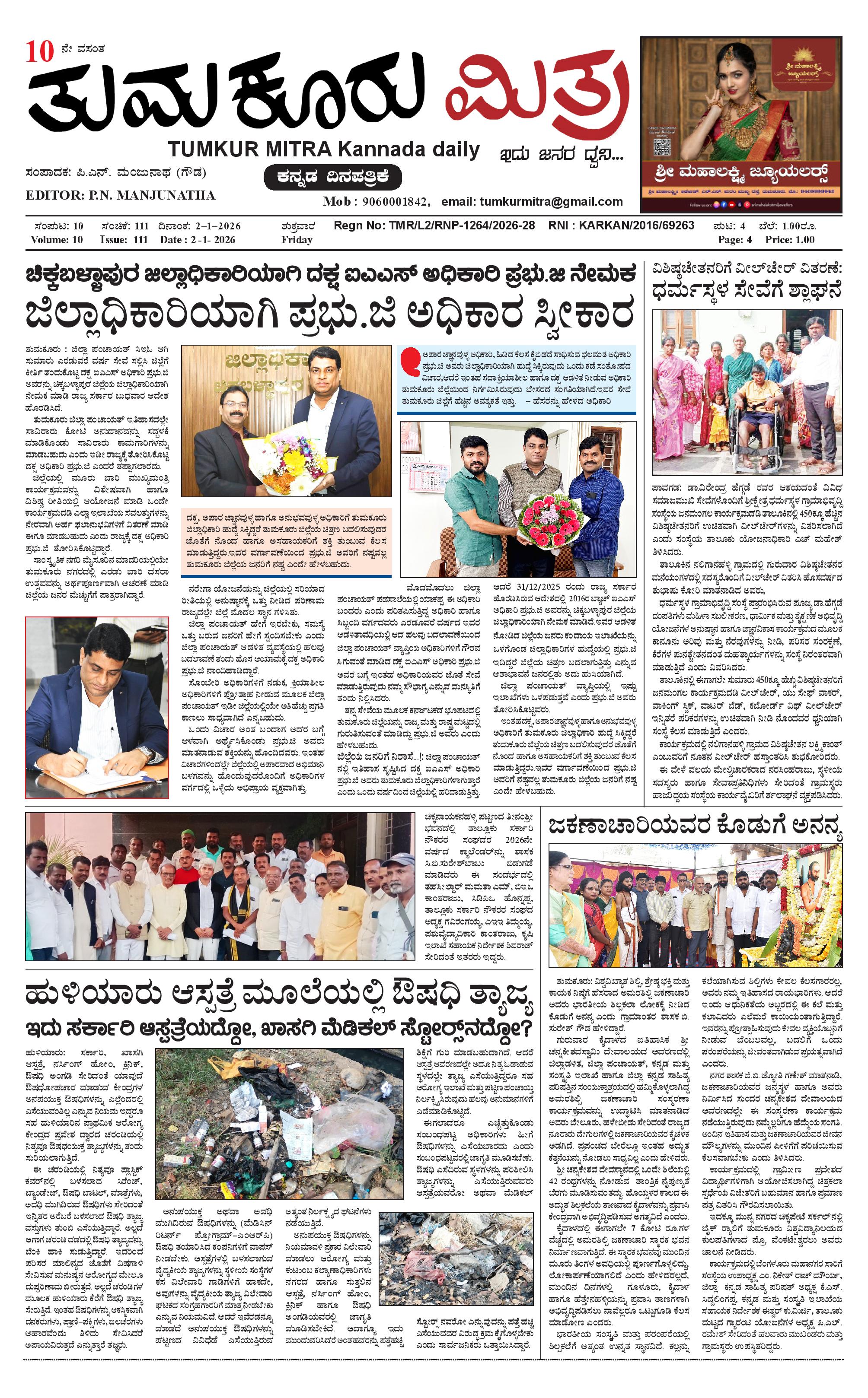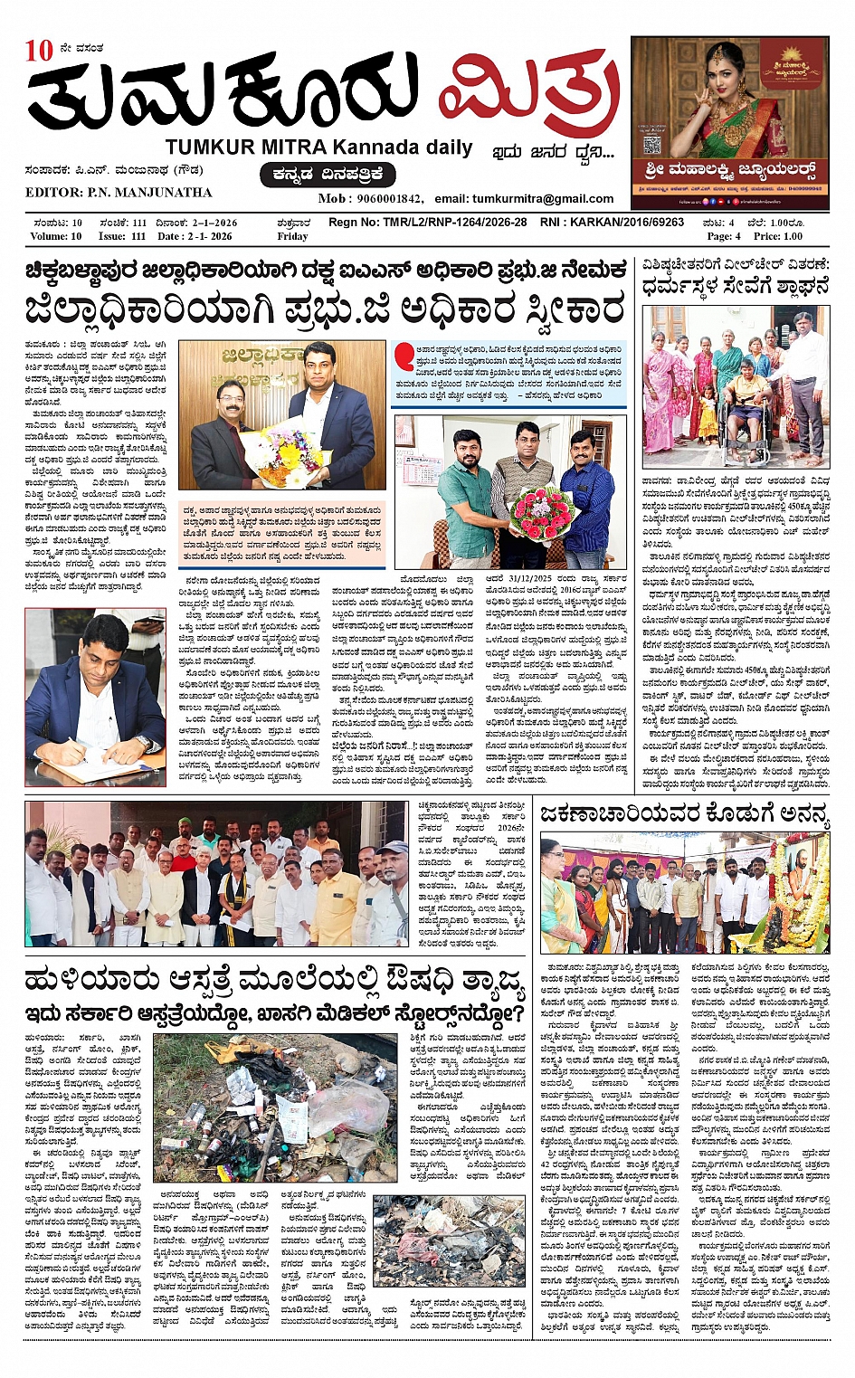 ತುಮಕೂರು ಮಿತ್ರ ಕನ್ನಡ ದಿನಪತ್ರಿಕೆ January 02, 2026 << First << 1 >> Last >> Page 1Page 2Page 3Page 4 × ತುಮಕೂರು ಮಿತ್ರ ಕನ್ನಡ ದಿನಪತ್ರಿಕೆ 1-page-0012-page-0013-page-0014-page-001 << First << 1 >> Last >> 1-page-0012-page-0013-page-0014-page-001 1-page-001