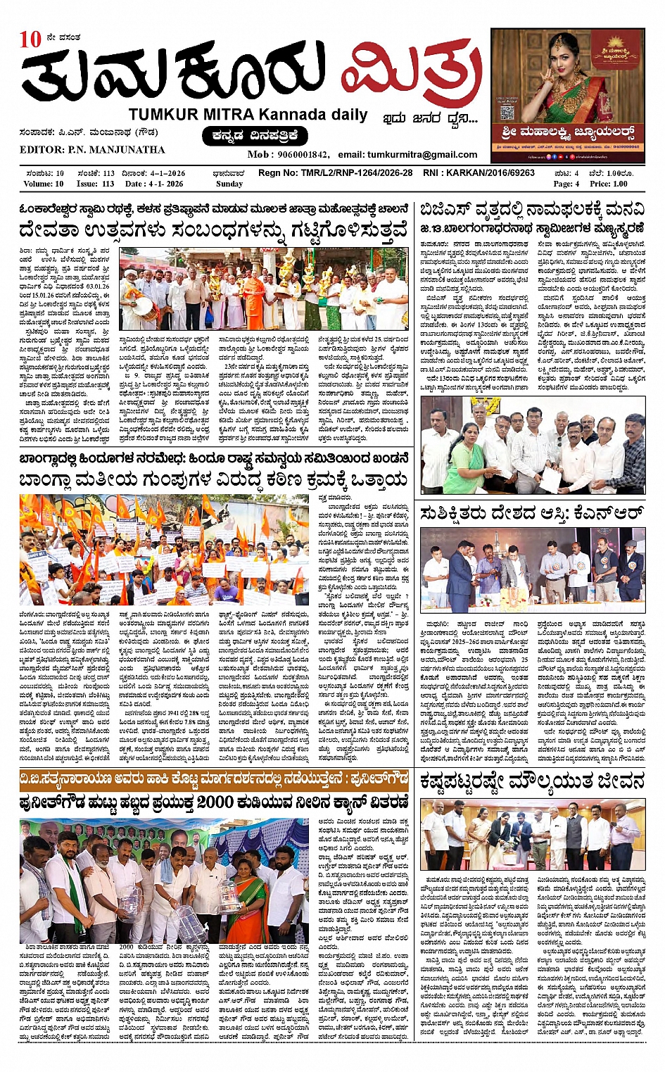 ತುಮಕೂರು ಮಿತ್ರ ಕನ್ನಡ ದಿನಪತ್ರಿಕೆ January 04, 2026 << First << 1 >> Last >> Page 1Page 2Page 3Page 4 × ತುಮಕೂರು ಮಿತ್ರ ಕನ್ನಡ ದಿನಪತ್ರಿಕೆ 4-page-0024-page-0044-page-0054-page-003 << First << 1 >> Last >> 4-page-0024-page-0044-page-0054-page-003 4-page-002