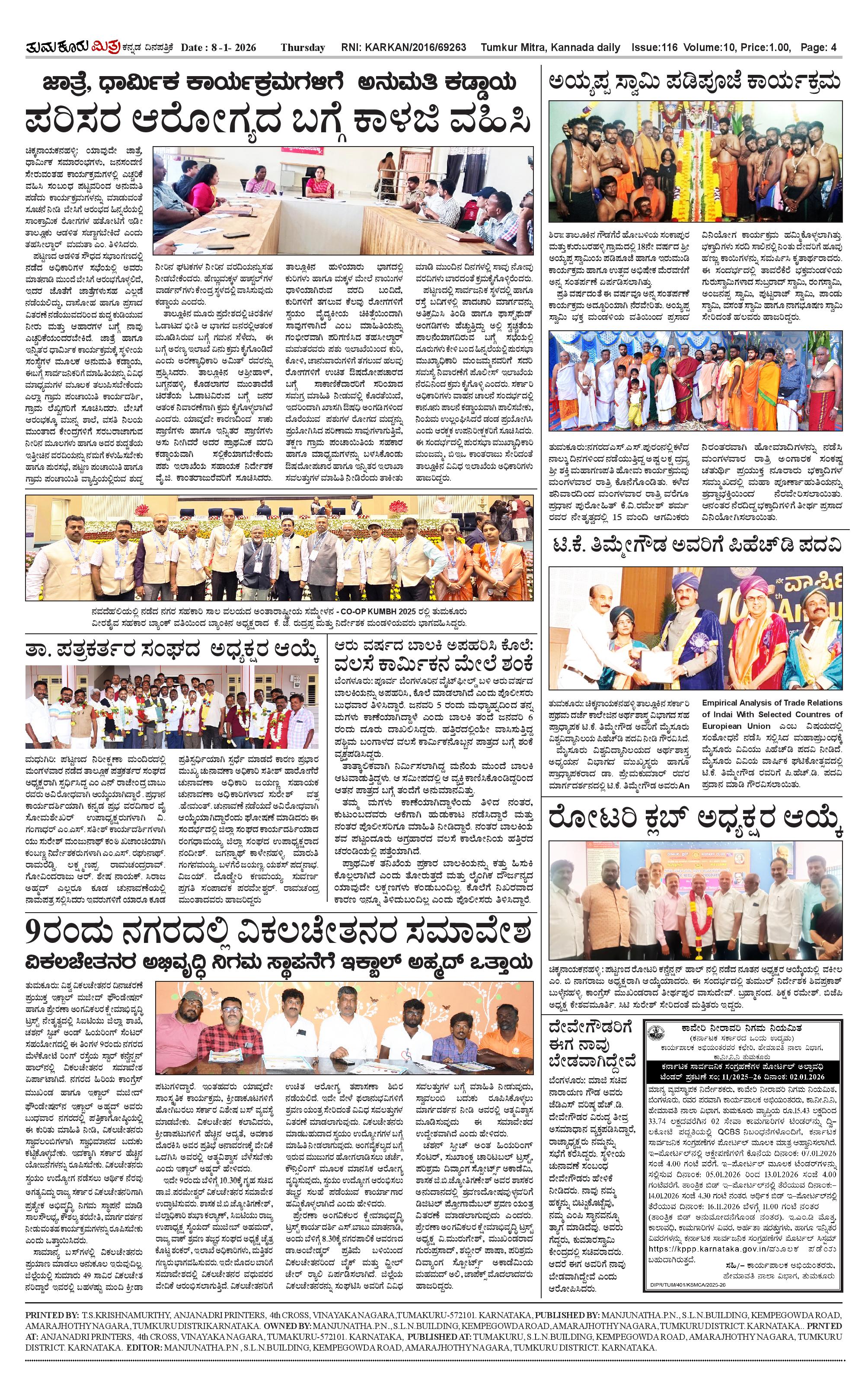 ತುಮಕೂರು ಮಿತ್ರ ಕನ್ನಡ ದಿನಪತ್ರಿಕೆ Page: 4 January 08, 2026 << First << 4 >> Last >> Page 1Page 2Page 3Page 4 × ತುಮಕೂರು ಮಿತ್ರ ಕನ್ನಡ ದಿನಪತ್ರಿಕೆ 1-page-0012-page-0015-page-0014-page-001 << First << 4 >> Last >> 1-page-0012-page-0015-page-0014-page-001 4-page-001