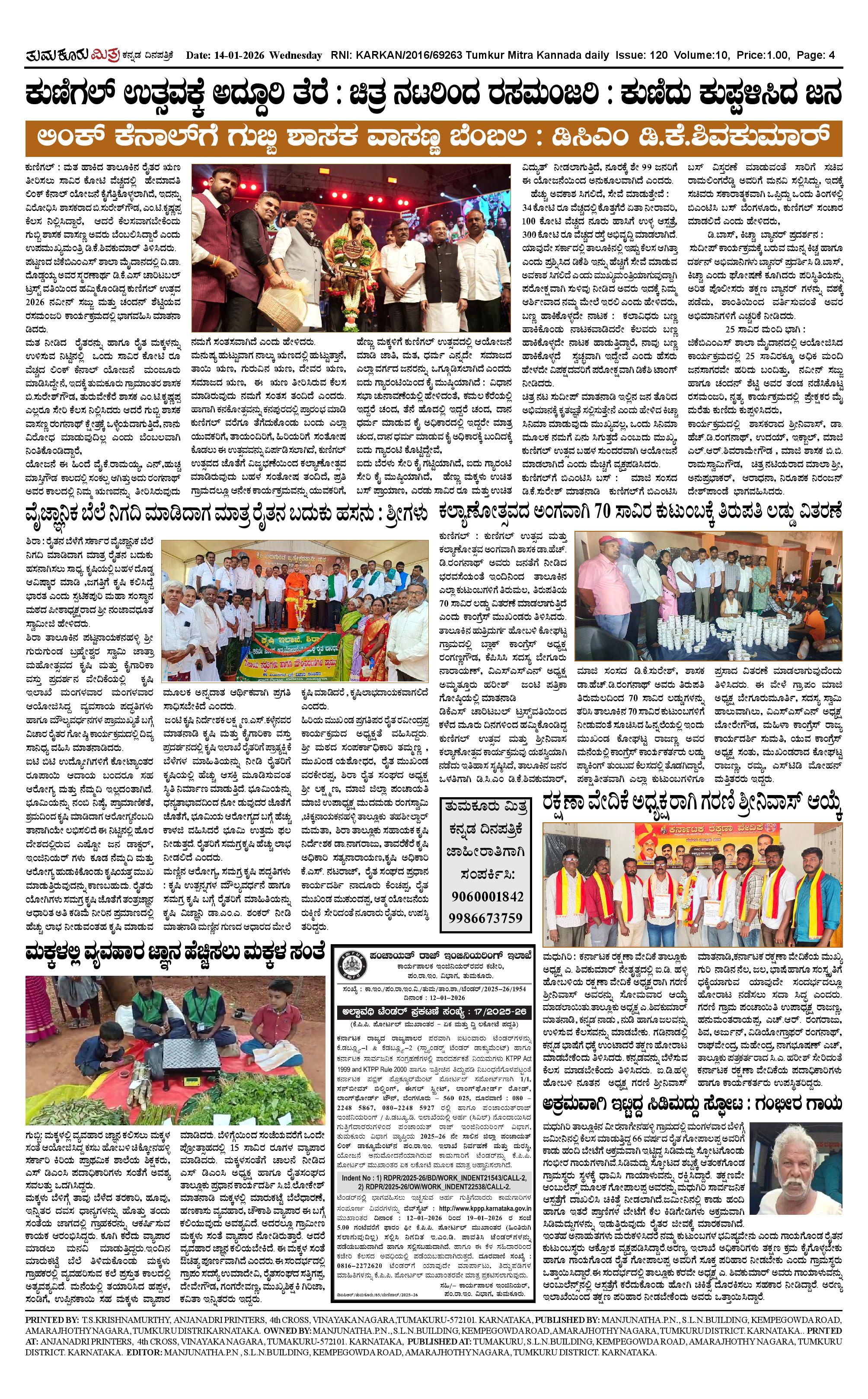 ತುಮಕೂರು ಮಿತ್ರ ಕನ್ನಡ ದಿನಪತ್ರಿಕೆ Page: 4 January 14, 2026 << First << 4 >> Last >> Page 1Page 2Page 3Page 4 × ತುಮಕೂರು ಮಿತ್ರ ಕನ್ನಡ ದಿನಪತ್ರಿಕೆ TUMKUR MITRA 14-01-26-page-0012-page-0013-page-001TUMKUR MITRA 14-01-26-page-004 << First << 4 >> Last >> TUMKUR MITRA 14-01-26-page-0012-page-0013-page-001TUMKUR MITRA 14-01-26-page-004 TUMKUR MITRA 14-01-26-page-004