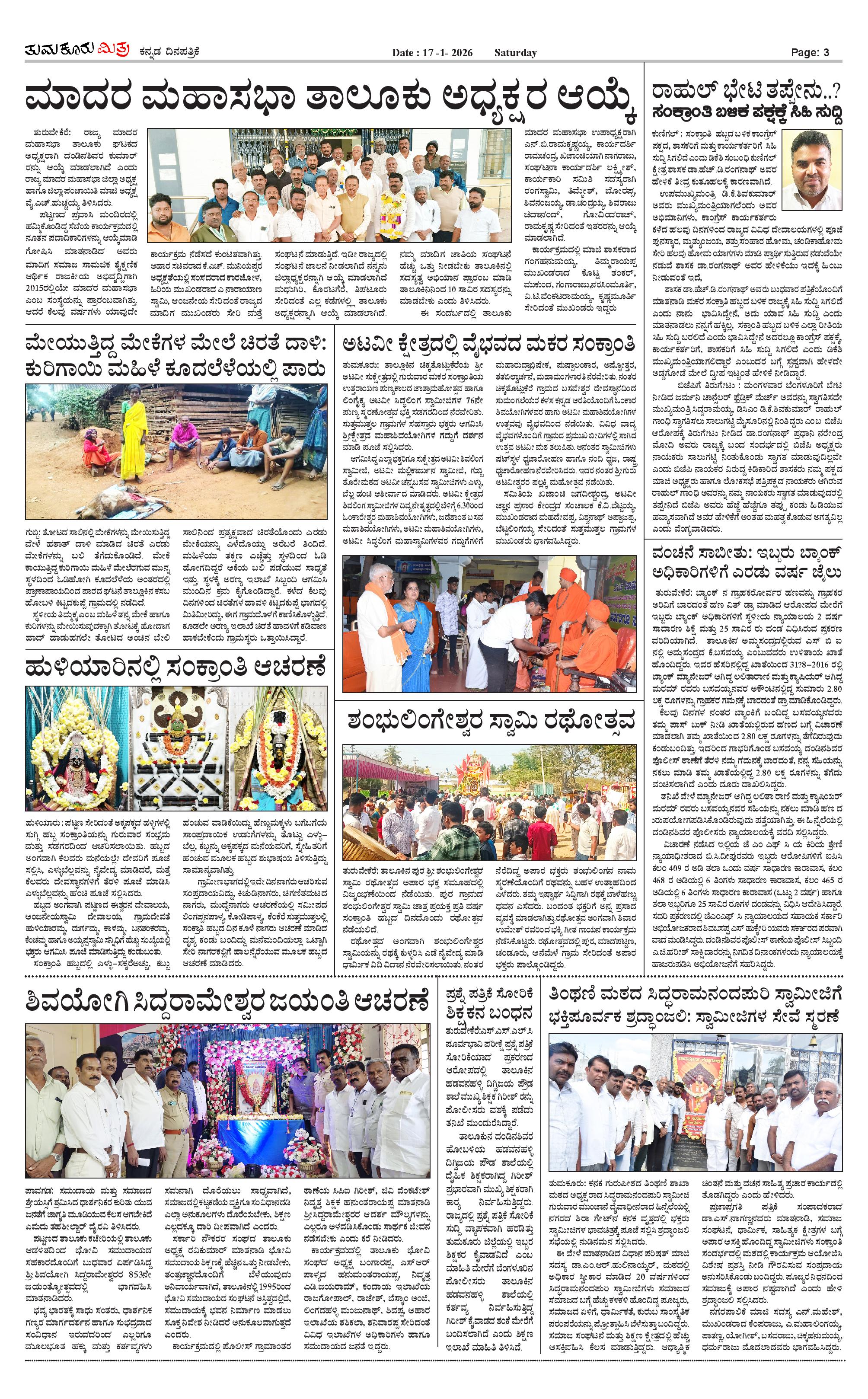 ತುಮಕೂರು ಮಿತ್ರ ಕನ್ನಡ ದಿನಪತ್ರಿಕೆ Page: 3 January 17, 2026 << First << 3 >> Last >> Page 1Page 2Page 3Page 4 × ತುಮಕೂರು ಮಿತ್ರ ಕನ್ನಡ ದಿನಪತ್ರಿಕೆ 1-page-0012-page-0013-page-0014-page-001 << First << 3 >> Last >> 1-page-0012-page-0013-page-0014-page-001 3-page-001