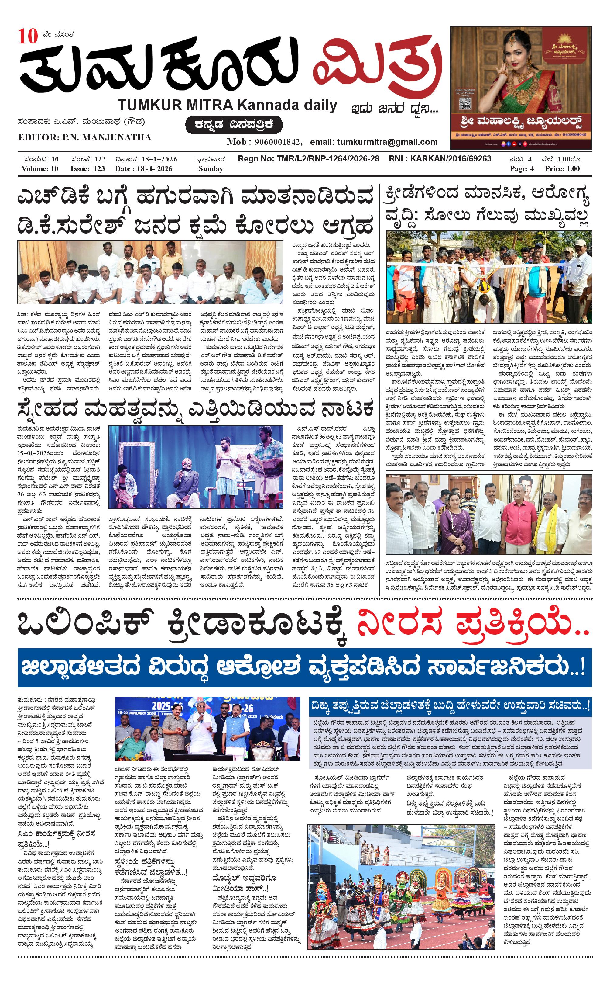 ತುಮಕೂರು ಮಿತ್ರ ಕನ್ನಡ ದಿನಪತ್ರಿಕೆ January 18, 2026 << First << 1 >> Last >> Page 1Page 2Page 3 × ತುಮಕೂರು ಮಿತ್ರ ಕನ್ನಡ ದಿನಪತ್ರಿಕೆ 1-page-0012-page-0013-page-001 << First << 1 >> Last >> 1-page-0012-page-0013-page-001 1-page-001