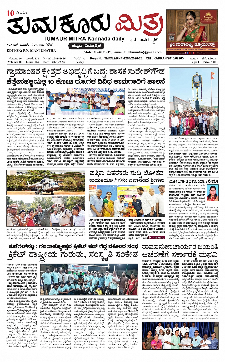 ತುಮಕೂರು ಮಿತ್ರ ಕನ್ನಡ ದಿನಪತ್ರಿಕೆ January 20, 2026 << First << 1 >> Last >> Page 1Page 2Page 3Page 4 × ತುಮಕೂರು ಮಿತ್ರ ಕನ್ನಡ ದಿನಪತ್ರಿಕೆ 1 (1)-page-0012-page-0013-page-0014-page-001 << First << 1 >> Last >> 1 (1)-page-0012-page-0013-page-0014-page-001 1 (1)-page-001