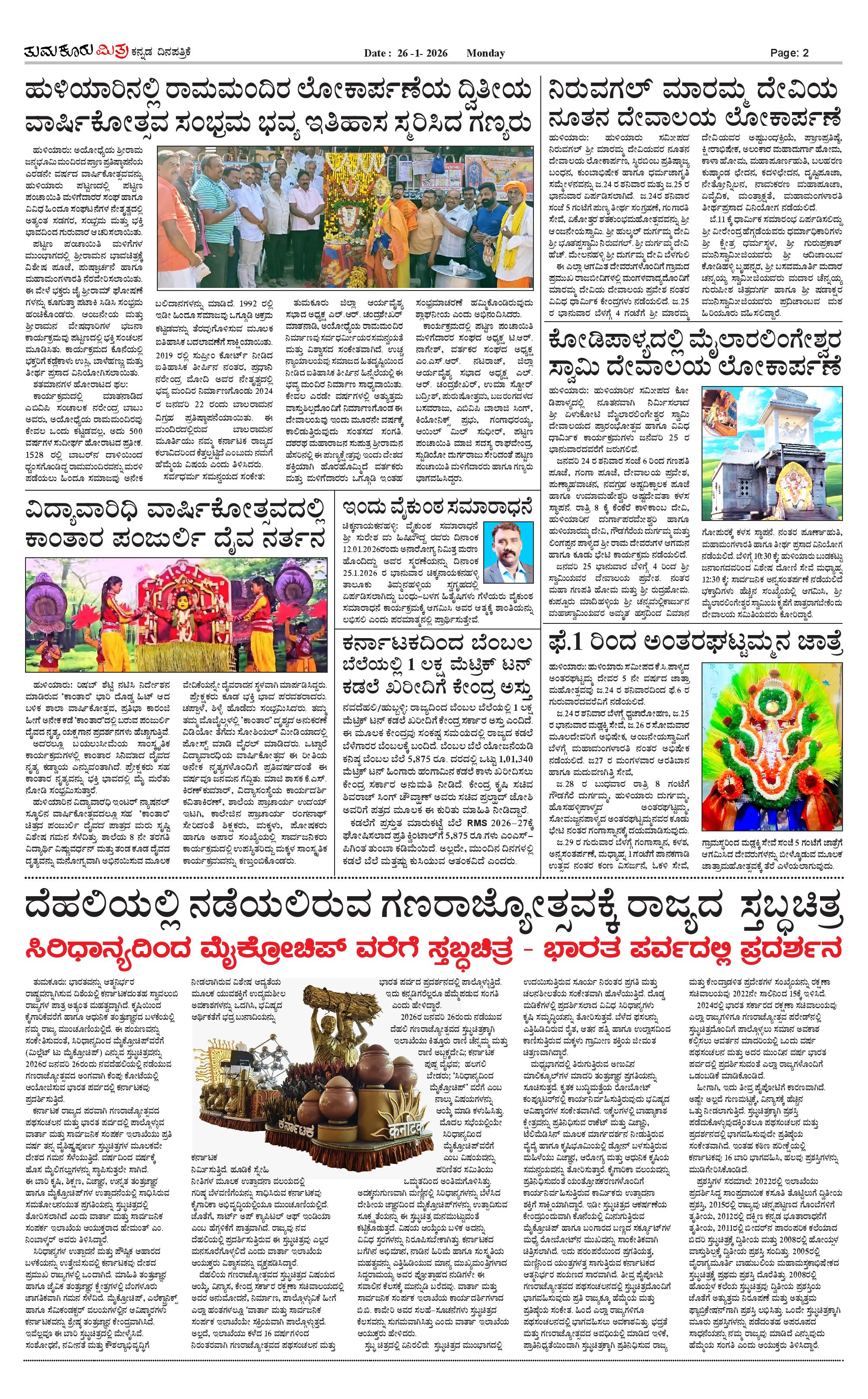 ತುಮಕೂರು ಮಿತ್ರ ಕನ್ನಡ ದಿನಪತ್ರಿಕೆ Page: 2 January 26, 2026 << First << 2 >> Last >> Page 1Page 2Page 3Page 4 × ತುಮಕೂರು ಮಿತ್ರ ಕನ್ನಡ ದಿನಪತ್ರಿಕೆ 1-page-0012 (1)-page-0013-page-0014-page-001 << First << 2 >> Last >> 1-page-0012 (1)-page-0013-page-0014-page-001 2 (1)-page-001