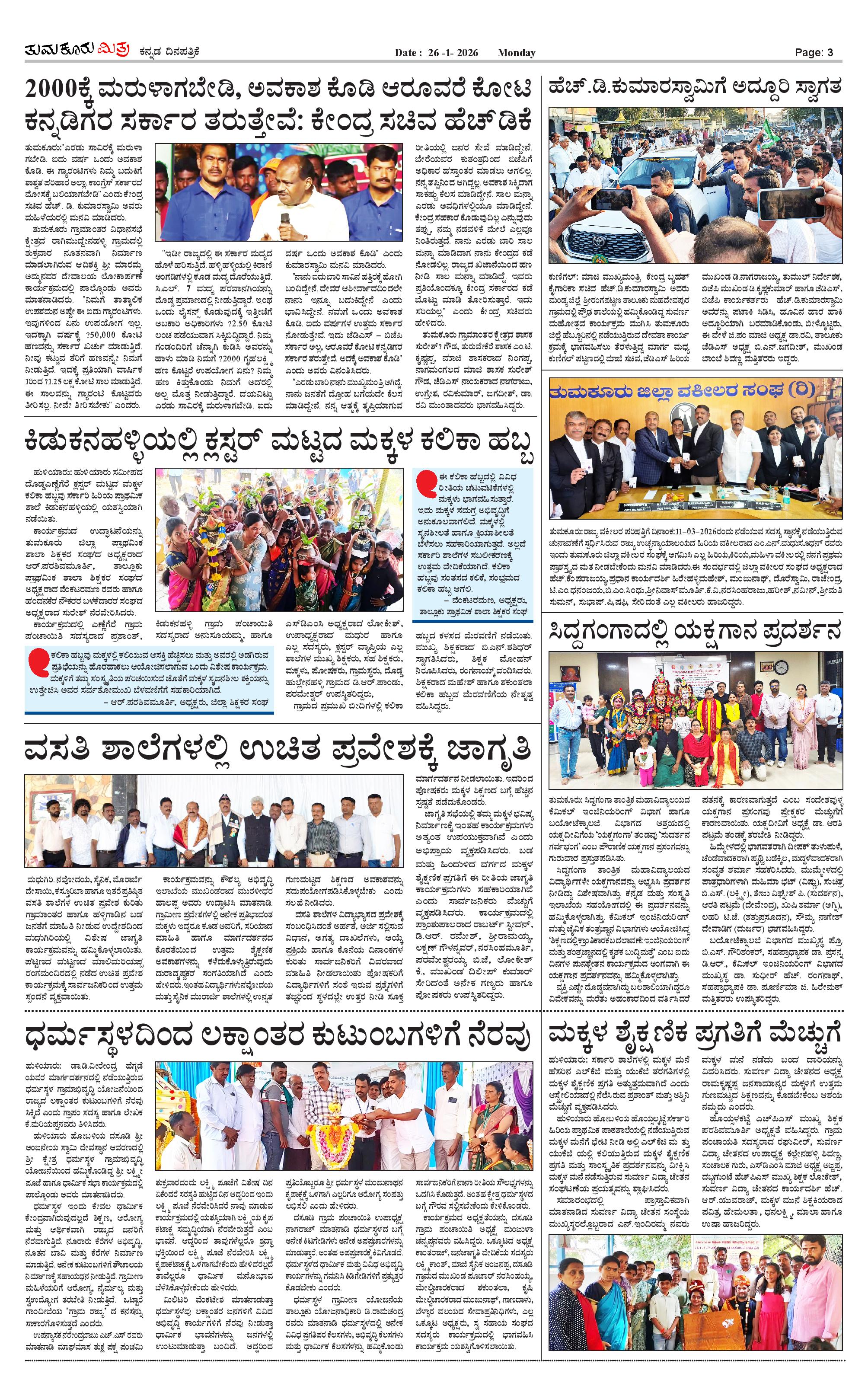 ತುಮಕೂರು ಮಿತ್ರ ಕನ್ನಡ ದಿನಪತ್ರಿಕೆ Page: 3 January 26, 2026 << First << 3 >> Last >> Page 1Page 2Page 3Page 4 × ತುಮಕೂರು ಮಿತ್ರ ಕನ್ನಡ ದಿನಪತ್ರಿಕೆ 1-page-0012 (1)-page-0013-page-0014-page-001 << First << 3 >> Last >> 1-page-0012 (1)-page-0013-page-0014-page-001 3-page-001