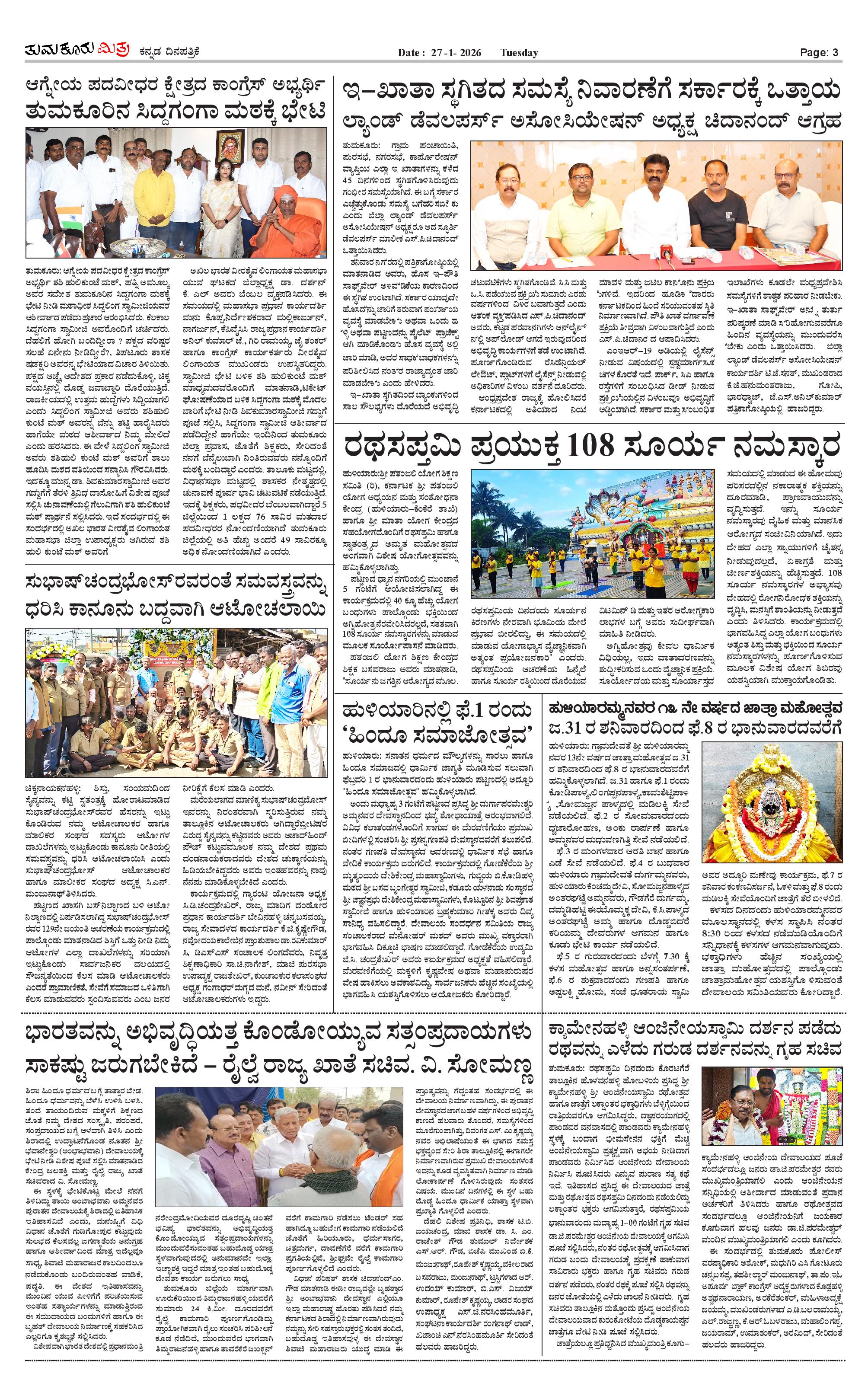 ತುಮಕೂರು ಮಿತ್ರ ಕನ್ನಡ ದಿನಪತ್ರಿಕೆ Page: 3 January 27, 2026 << First << 3 >> Last >> Page 1Page 2Page 3Page 4 × ತುಮಕೂರು ಮಿತ್ರ ಕನ್ನಡ ದಿನಪತ್ರಿಕೆ 1-page-0012-page-0013-page-0014 (1)-page-001 << First << 3 >> Last >> 1-page-0012-page-0013-page-0014 (1)-page-001 3-page-001