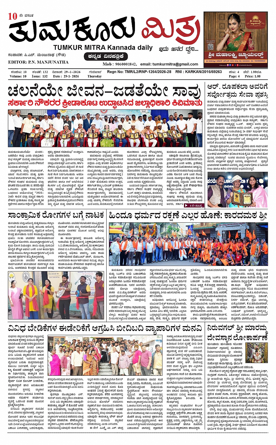 ತುಮಕೂರು ಮಿತ್ರ ಕನ್ನಡ ದಿನಪತ್ರಿಕೆ January 29, 2026 << First << 1 >> Last >> Page 1Page 2Page 3Page 4 × ತುಮಕೂರು ಮಿತ್ರ ಕನ್ನಡ ದಿನಪತ್ರಿಕೆ 1-page-0012-page-0013-page-0014 (1)-page-001 << First << 1 >> Last >> 1-page-0012-page-0013-page-0014 (1)-page-001 1-page-001