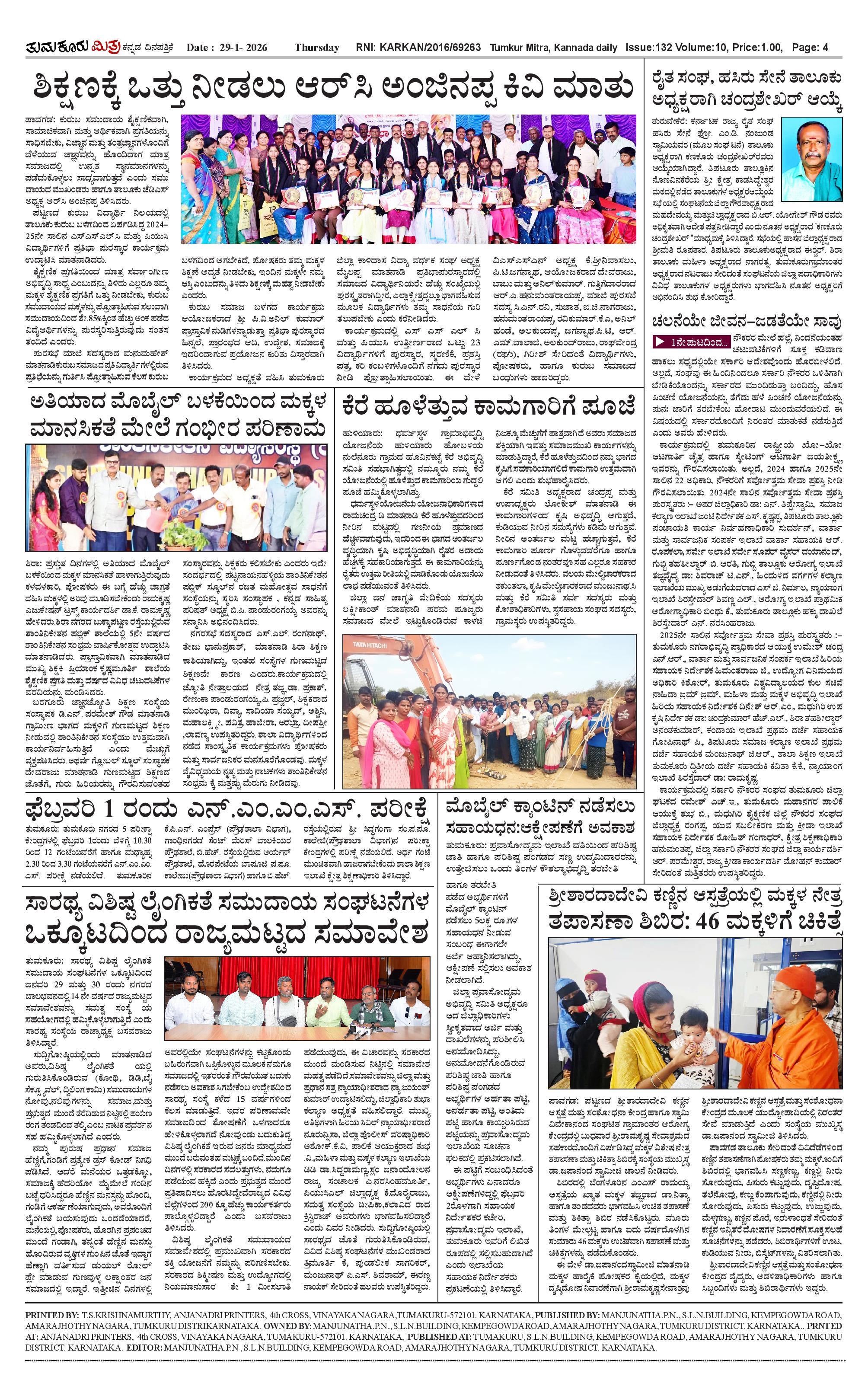 ತುಮಕೂರು ಮಿತ್ರ ಕನ್ನಡ ದಿನಪತ್ರಿಕೆ Page: 4 January 29, 2026 << First << 4 >> Last >> Page 1Page 2Page 3Page 4 × ತುಮಕೂರು ಮಿತ್ರ ಕನ್ನಡ ದಿನಪತ್ರಿಕೆ 1-page-0012-page-0013-page-0014 (1)-page-001 << First << 4 >> Last >> 1-page-0012-page-0013-page-0014 (1)-page-001 4 (1)-page-001