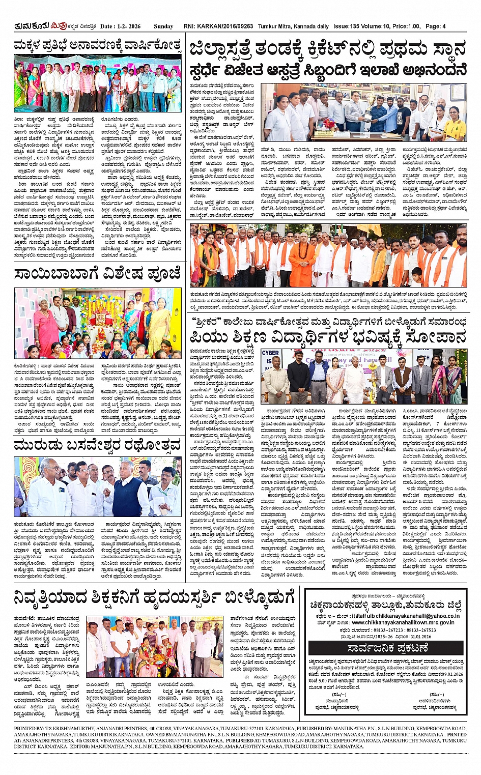 ತುಮಕೂರು ಮಿತ್ರ ಕನ್ನಡ ದಿನಪತ್ರಿಕೆ Page: 4 February 01, 2026 << First << 4 >> Last >> Page 1Page 2Page 3Page 4 × ತುಮಕೂರು ಮಿತ್ರ ಕನ್ನಡ ದಿನಪತ್ರಿಕೆ 1-page-0012-page-0013-page-0014-page-001 << First << 4 >> Last >> 1-page-0012-page-0013-page-0014-page-001 4-page-001