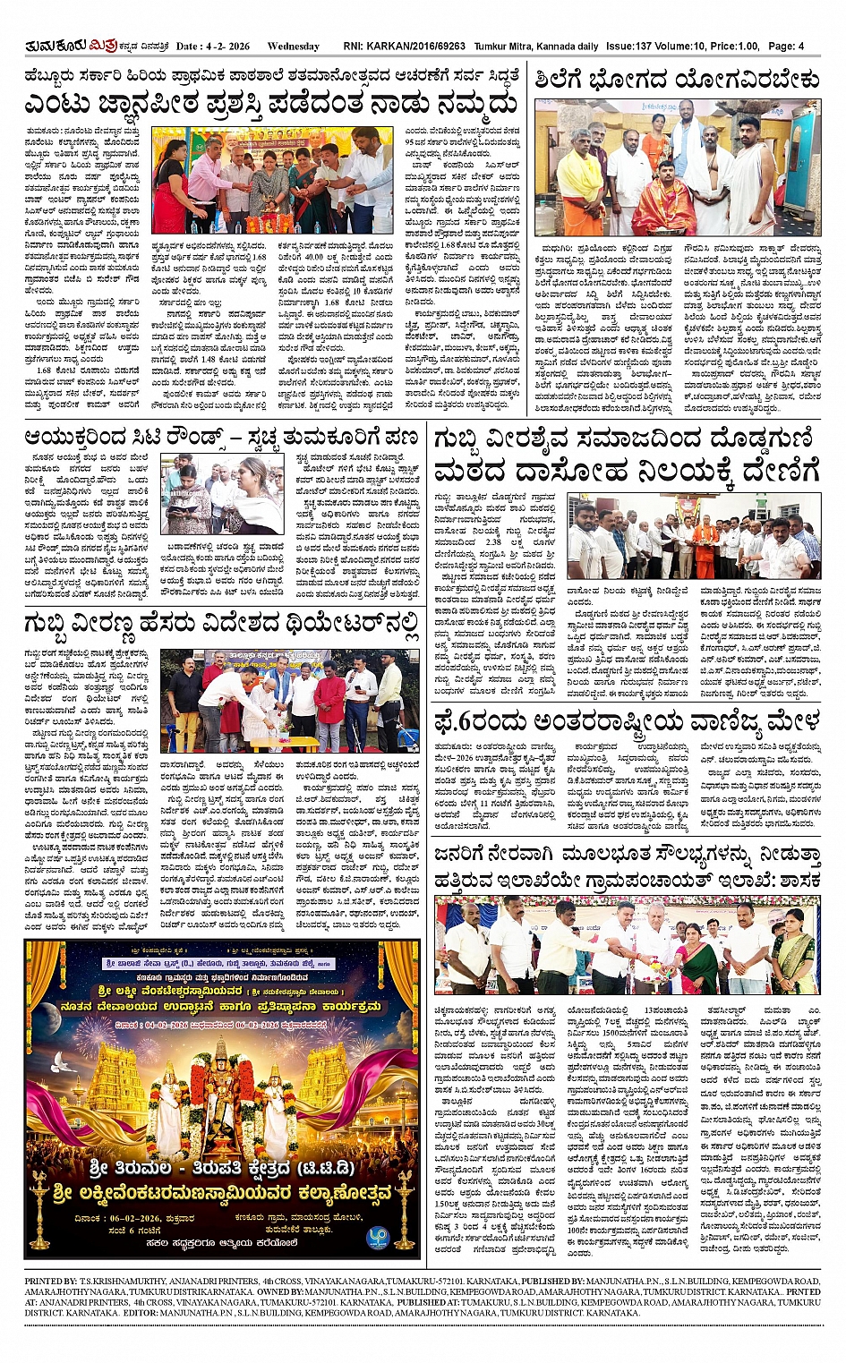 ತುಮಕೂರು ಮಿತ್ರ ಕನ್ನಡ ದಿನಪತ್ರಿಕೆ Page: 4 February 04, 2026 << First << 4 >> Last >> Page 1Page 2Page 3Page 4 × ತುಮಕೂರು ಮಿತ್ರ ಕನ್ನಡ ದಿನಪತ್ರಿಕೆ 1-page-0012-page-0013-page-0014-page-001 << First << 4 >> Last >> 1-page-0012-page-0013-page-0014-page-001 4-page-001