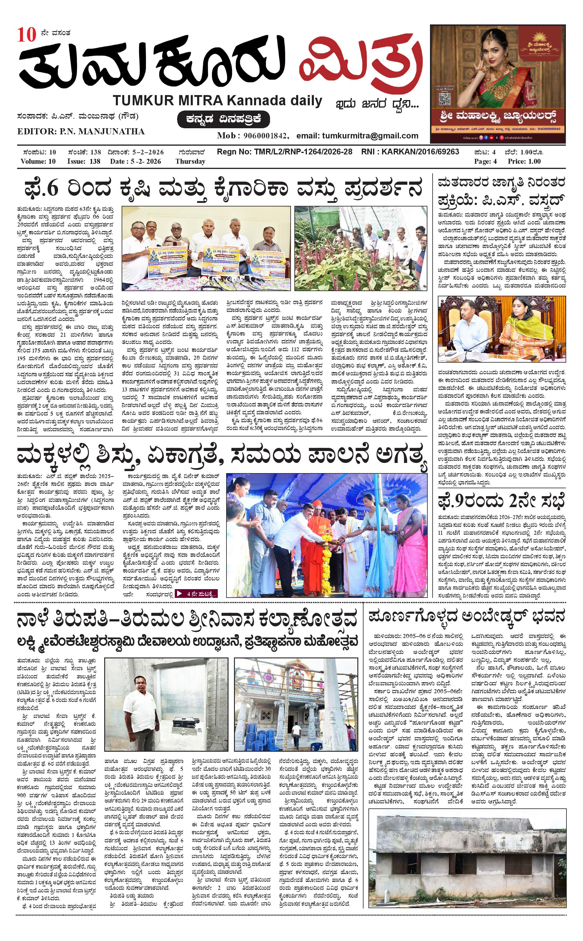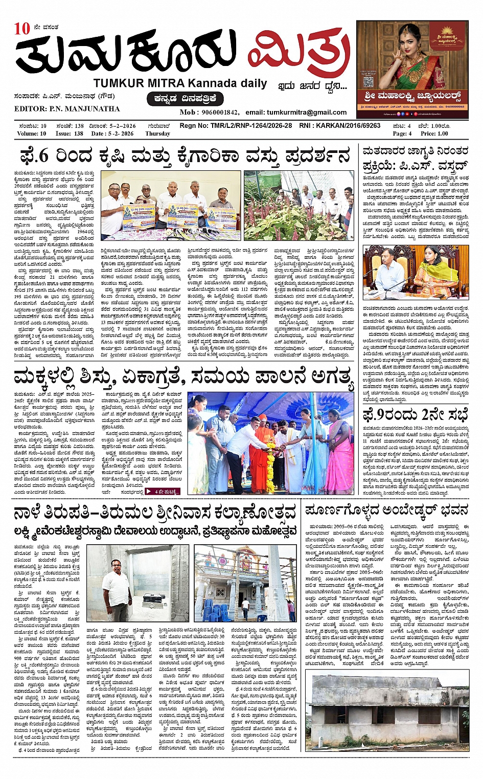 ತುಮಕೂರು ಮಿತ್ರ ಕನ್ನಡ ದಿನಪತ್ರಿಕೆ February 05, 2026 << First << 1 >> Last >> Page 1Page 2Page 3Page 4 × ತುಮಕೂರು ಮಿತ್ರ ಕನ್ನಡ ದಿನಪತ್ರಿಕೆ 1-page-0012-page-0013-page-0014 (1)-page-001 << First << 1 >> Last >> 1-page-0012-page-0013-page-0014 (1)-page-001 1-page-001