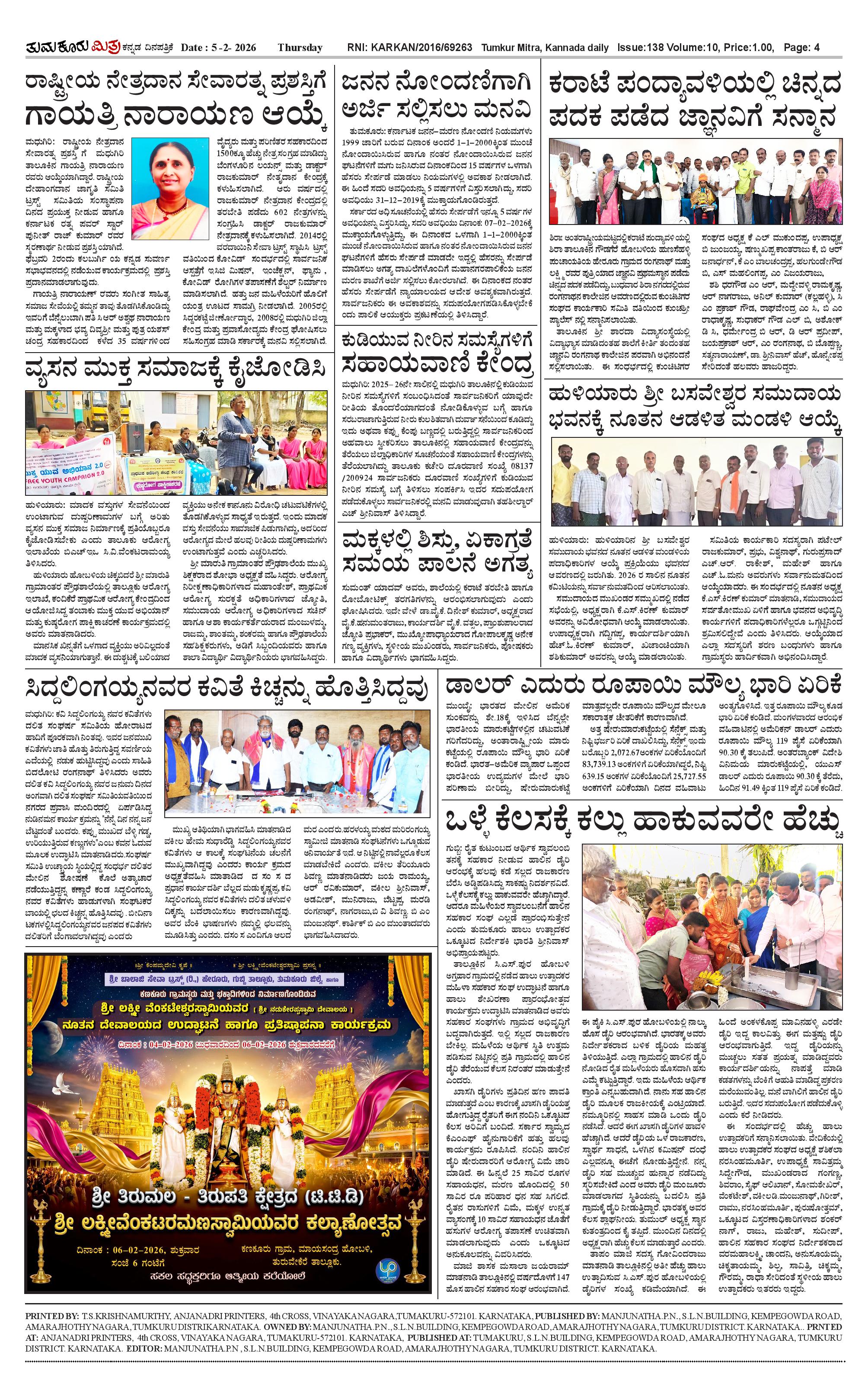 ತುಮಕೂರು ಮಿತ್ರ ಕನ್ನಡ ದಿನಪತ್ರಿಕೆ Page: 4 February 05, 2026 << First << 4 >> Last >> Page 1Page 2Page 3Page 4 × ತುಮಕೂರು ಮಿತ್ರ ಕನ್ನಡ ದಿನಪತ್ರಿಕೆ 1-page-0012-page-0013-page-0014 (1)-page-001 << First << 4 >> Last >> 1-page-0012-page-0013-page-0014 (1)-page-001 4 (1)-page-001