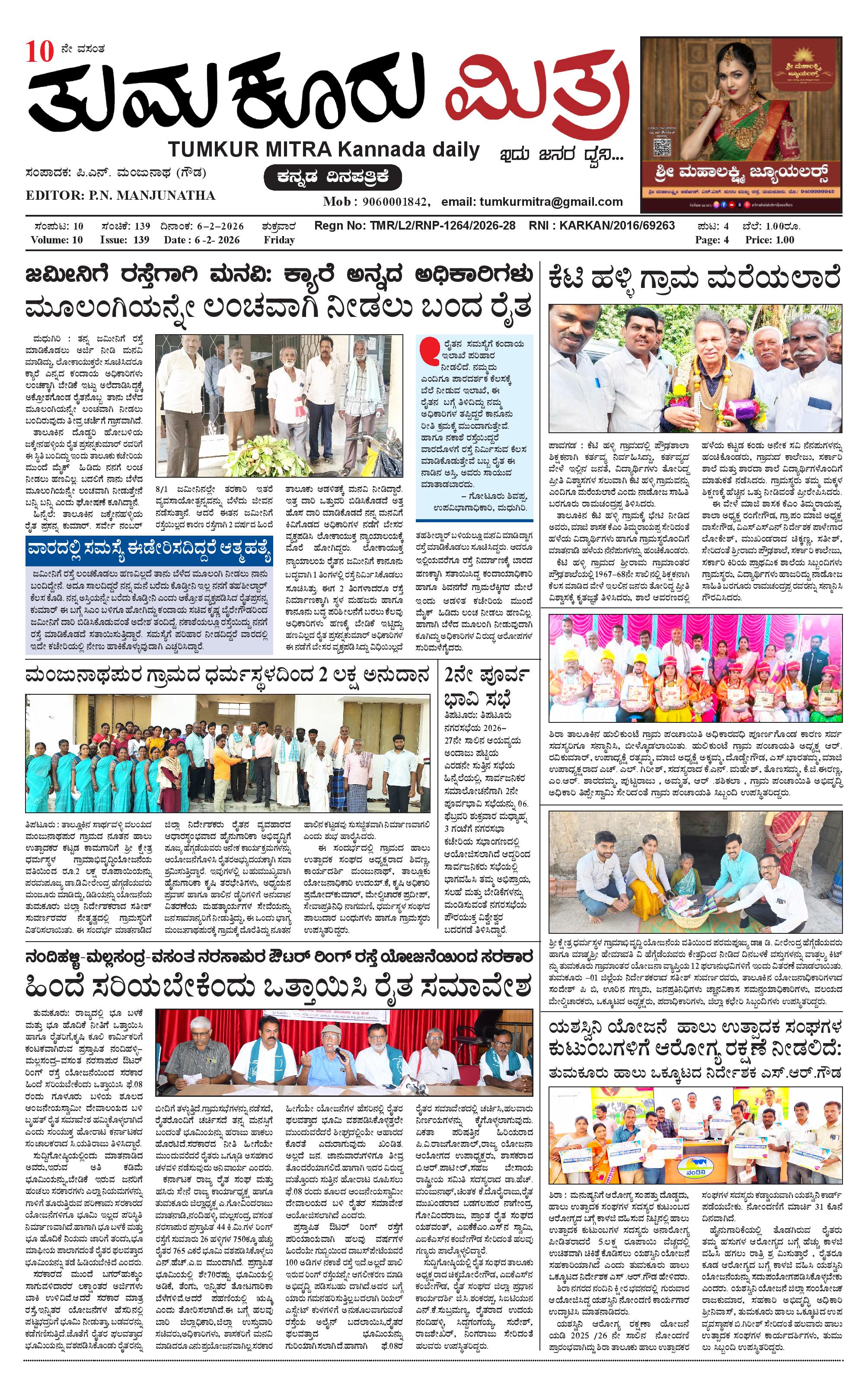 ತುಮಕೂರು ಮಿತ್ರ ಕನ್ನಡ ದಿನಪತ್ರಿಕೆ February 06, 2026 << First << 1 >> Last >> Page 1Page 2Page 3Page 4 × ತುಮಕೂರು ಮಿತ್ರ ಕನ್ನಡ ದಿನಪತ್ರಿಕೆ 1 (1)-page-0012-page-0013-page-0014-page-001 << First << 1 >> Last >> 1 (1)-page-0012-page-0013-page-0014-page-001 1 (1)-page-001