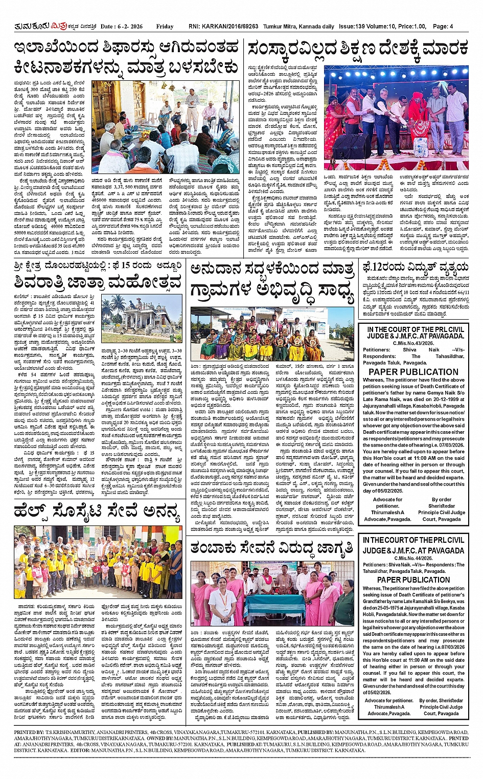 ತುಮಕೂರು ಮಿತ್ರ ಕನ್ನಡ ದಿನಪತ್ರಿಕೆ Page: 4 February 06, 2026 << First << 4 >> Last >> Page 1Page 2Page 3Page 4 × ತುಮಕೂರು ಮಿತ್ರ ಕನ್ನಡ ದಿನಪತ್ರಿಕೆ 1 (1)-page-0012-page-0013-page-0014-page-001 << First << 4 >> Last >> 1 (1)-page-0012-page-0013-page-0014-page-001 4-page-001