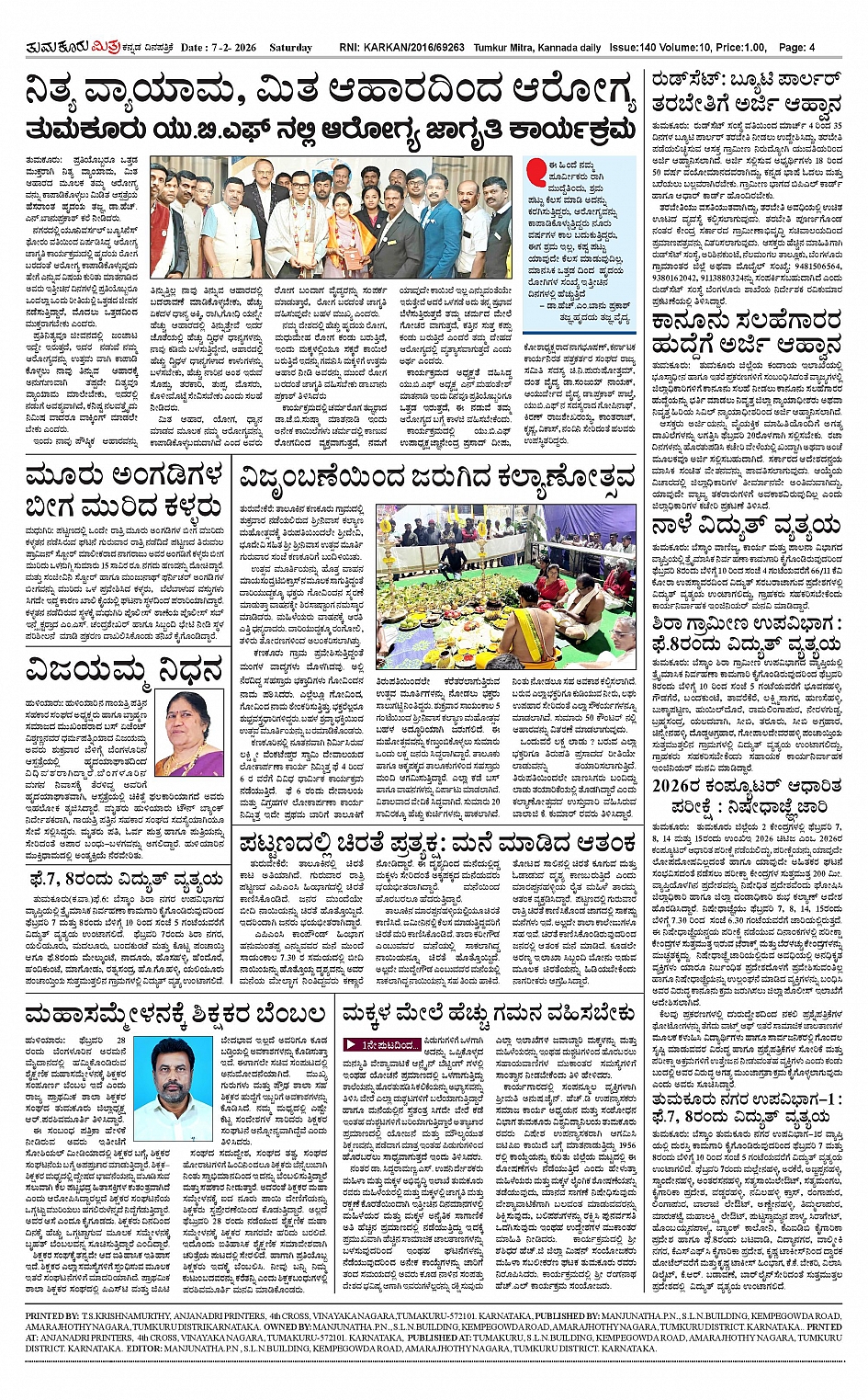 ತುಮಕೂರು ಮಿತ್ರ ಕನ್ನಡ ದಿನಪತ್ರಿಕೆ Page: 4 February 07, 2026 << First << 4 >> Last >> Page 1Page 2Page 3Page 4 × ತುಮಕೂರು ಮಿತ್ರ ಕನ್ನಡ ದಿನಪತ್ರಿಕೆ 1-page-0012 (1)-page-0014 (1)-page-0014-page-001 << First << 4 >> Last >> 1-page-0012 (1)-page-0014 (1)-page-0014-page-001 4-page-001
