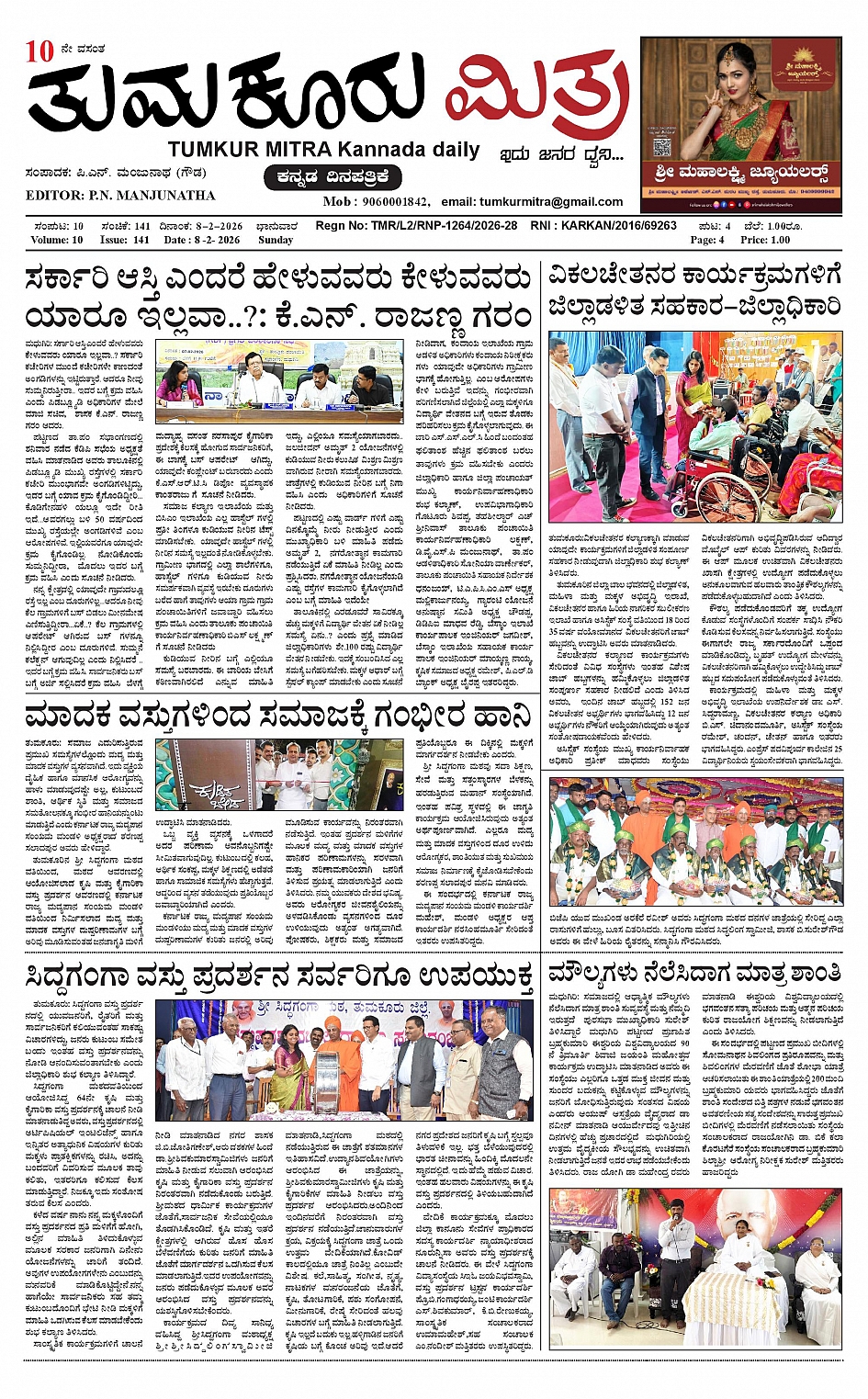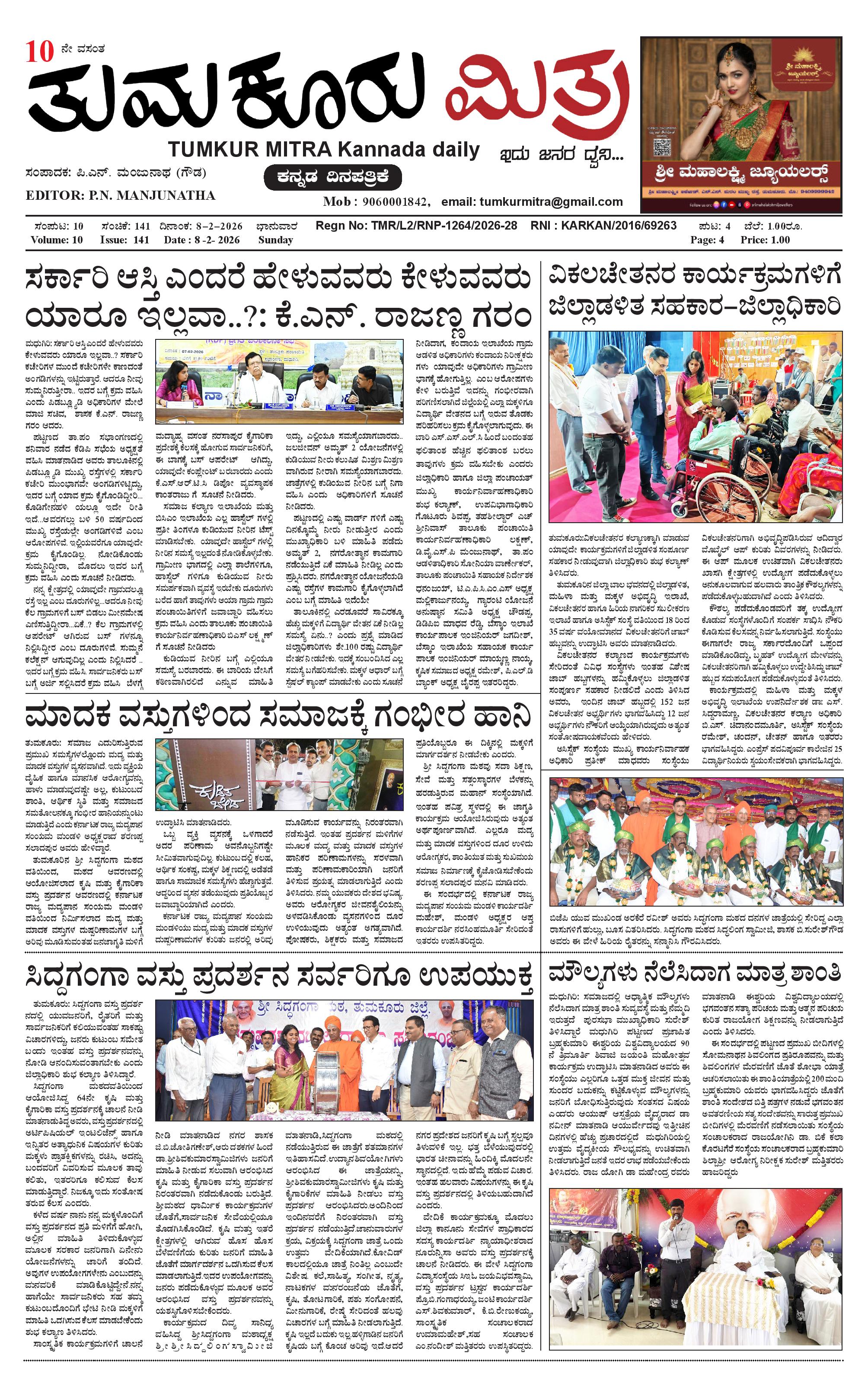 ತುಮಕೂರು ಮಿತ್ರ ಕನ್ನಡ ದಿನಪತ್ರಿಕೆ February 08, 2026 << First << 1 >> Last >> Page 1Page 2Page 3Page 4 × ತುಮಕೂರು ಮಿತ್ರ ಕನ್ನಡ ದಿನಪತ್ರಿಕೆ 1-page-0012-page-0013-page-0014 (2)-page-001 << First << 1 >> Last >> 1-page-0012-page-0013-page-0014 (2)-page-001 1-page-001