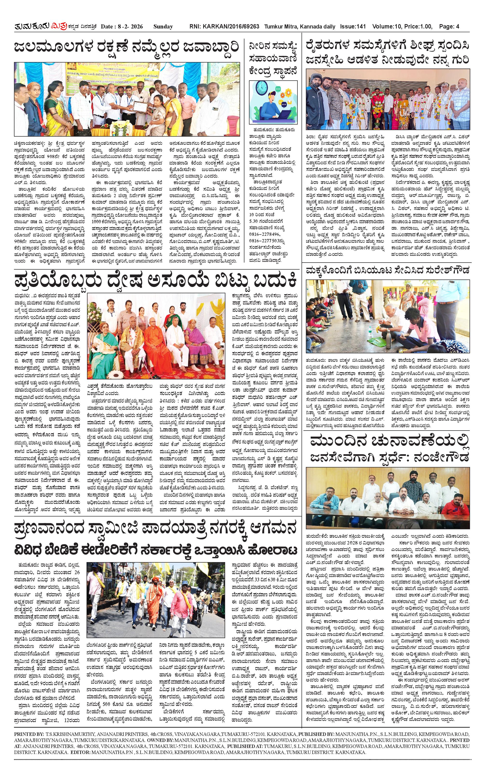 ತುಮಕೂರು ಮಿತ್ರ ಕನ್ನಡ ದಿನಪತ್ರಿಕೆ Page: 4 February 08, 2026 << First << 4 >> Last >> Page 1Page 2Page 3Page 4 × ತುಮಕೂರು ಮಿತ್ರ ಕನ್ನಡ ದಿನಪತ್ರಿಕೆ 1-page-0012-page-0013-page-0014 (2)-page-001 << First << 4 >> Last >> 1-page-0012-page-0013-page-0014 (2)-page-001 4 (2)-page-001