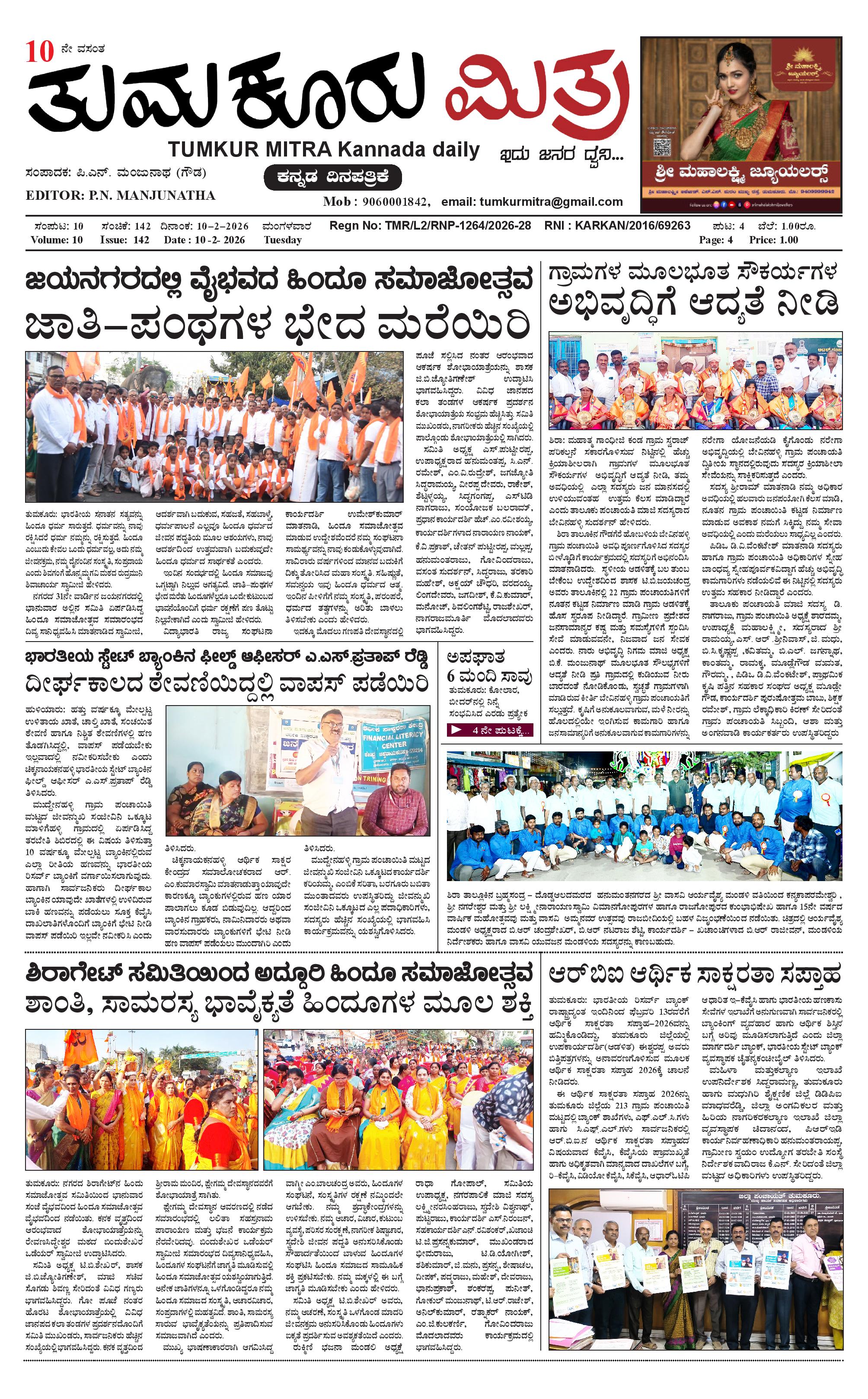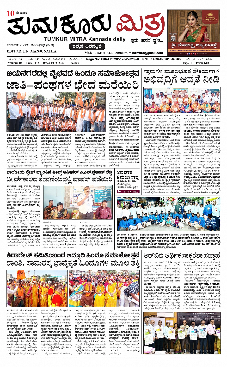 ತುಮಕೂರು ಮಿತ್ರ ಕನ್ನಡ ದಿನಪತ್ರಿಕೆ February 10, 2026 << First << 1 >> Last >> Page 1Page 2Page 3Page 4 × ತುಮಕೂರು ಮಿತ್ರ ಕನ್ನಡ ದಿನಪತ್ರಿಕೆ 1-page-0012-page-0013-page-0014-page-001 << First << 1 >> Last >> 1-page-0012-page-0013-page-0014-page-001 1-page-001