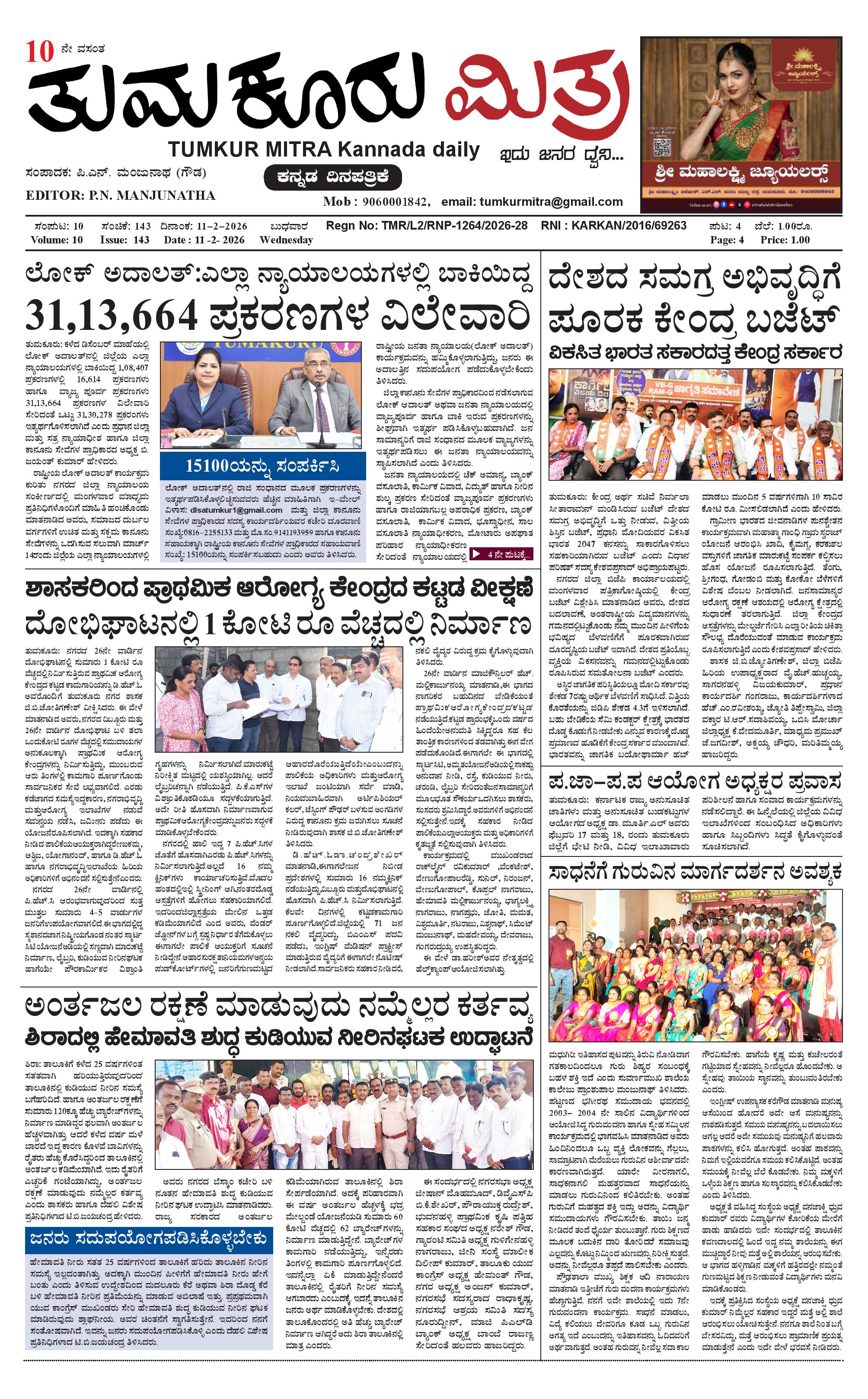 ತುಮಕೂರು ಮಿತ್ರ ಕನ್ನಡ ದಿನಪತ್ರಿಕೆ February 11, 2026 << First << 1 >> Last >> Page 1Page 2Page 3Page 4 × ತುಮಕೂರು ಮಿತ್ರ ಕನ್ನಡ ದಿನಪತ್ರಿಕೆ 1-page-0012-page-0013-page-0014 (1)-page-001 << First << 1 >> Last >> 1-page-0012-page-0013-page-0014 (1)-page-001 1-page-001