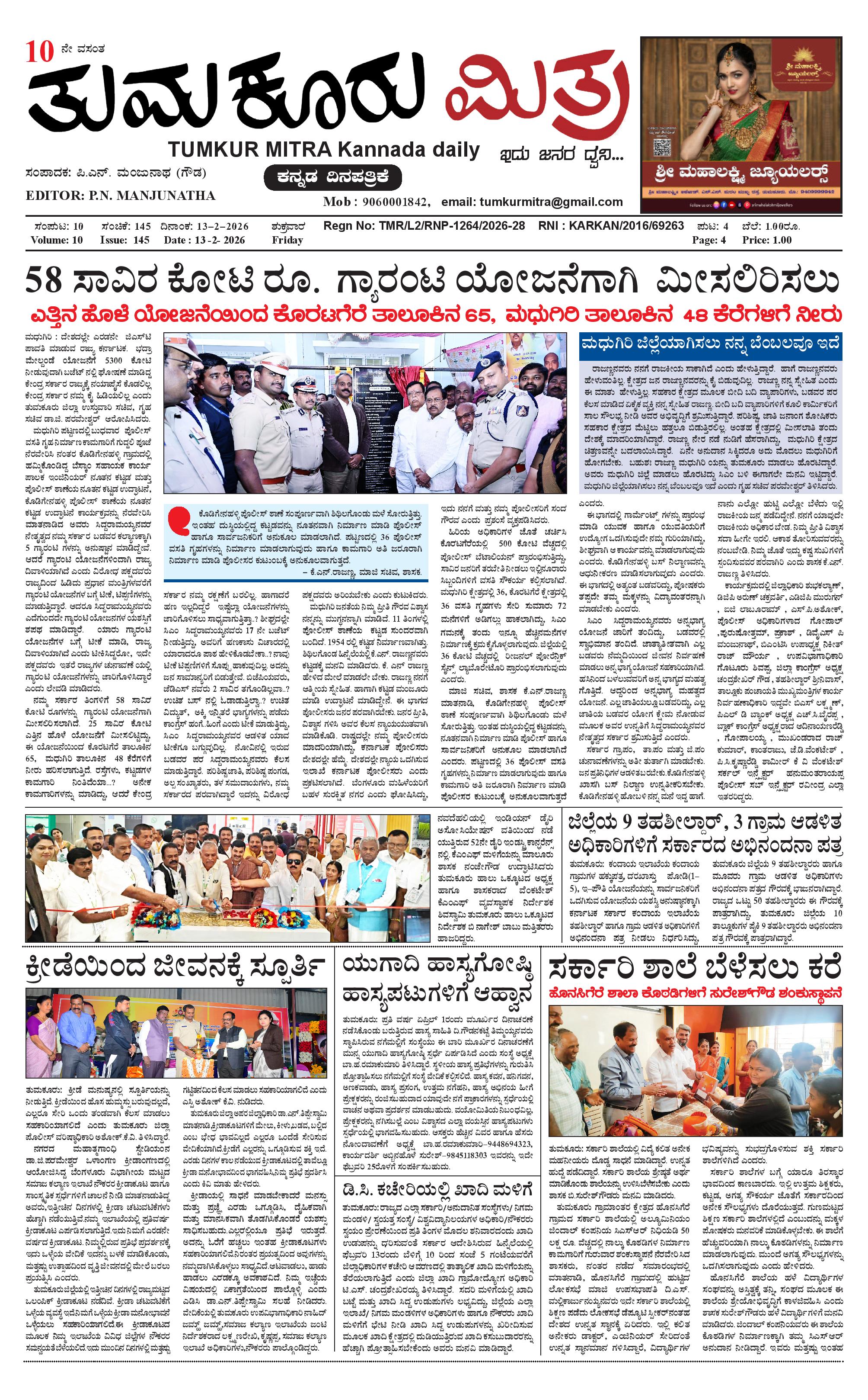ತುಮಕೂರು ಮಿತ್ರ ಕನ್ನಡ ದಿನಪತ್ರಿಕೆ February 13, 2026 << First << 1 >> Last >> Page 1Page 2Page 3Page 4 × ತುಮಕೂರು ಮಿತ್ರ ಕನ್ನಡ ದಿನಪತ್ರಿಕೆ 1-page-0012-page-0013-page-0014 (1)-page-001 << First << 1 >> Last >> 1-page-0012-page-0013-page-0014 (1)-page-001 1-page-001