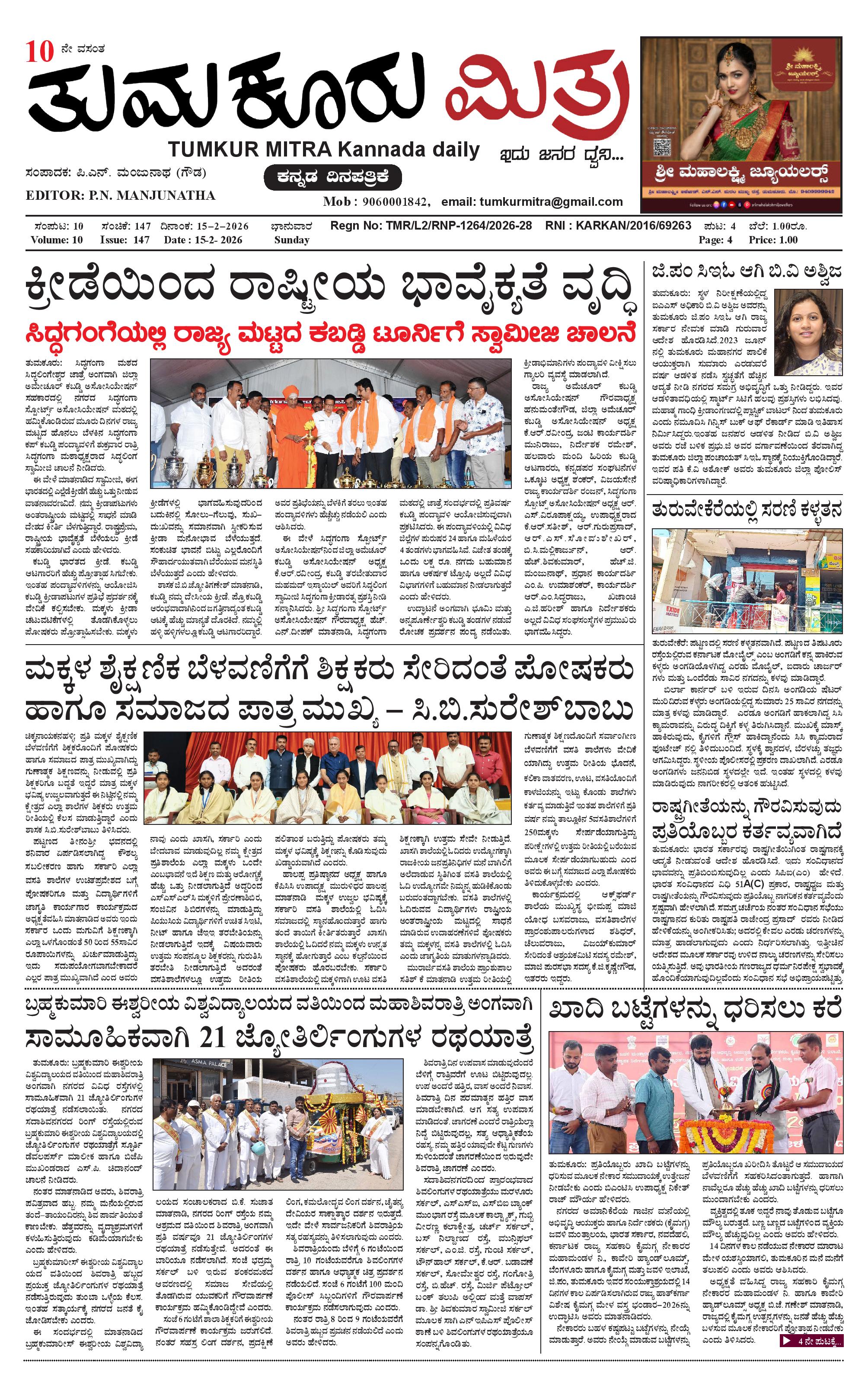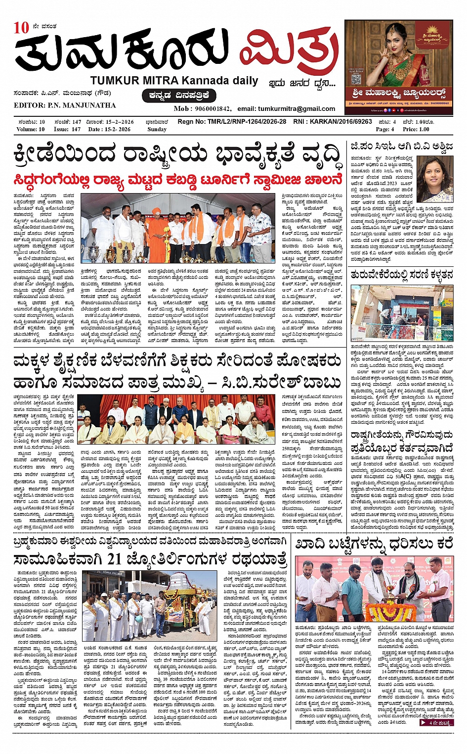 ತುಮಕೂರು ಮಿತ್ರ ಕನ್ನಡ ದಿನಪತ್ರಿಕೆ February 15, 2026 << First << 1 >> Last >> Page 1Page 2Page 3Page 4 × ತುಮಕೂರು ಮಿತ್ರ ಕನ್ನಡ ದಿನಪತ್ರಿಕೆ 1 (1)-page-0012-page-0013-page-0014-page-001 << First << 1 >> Last >> 1 (1)-page-0012-page-0013-page-0014-page-001 1 (1)-page-001