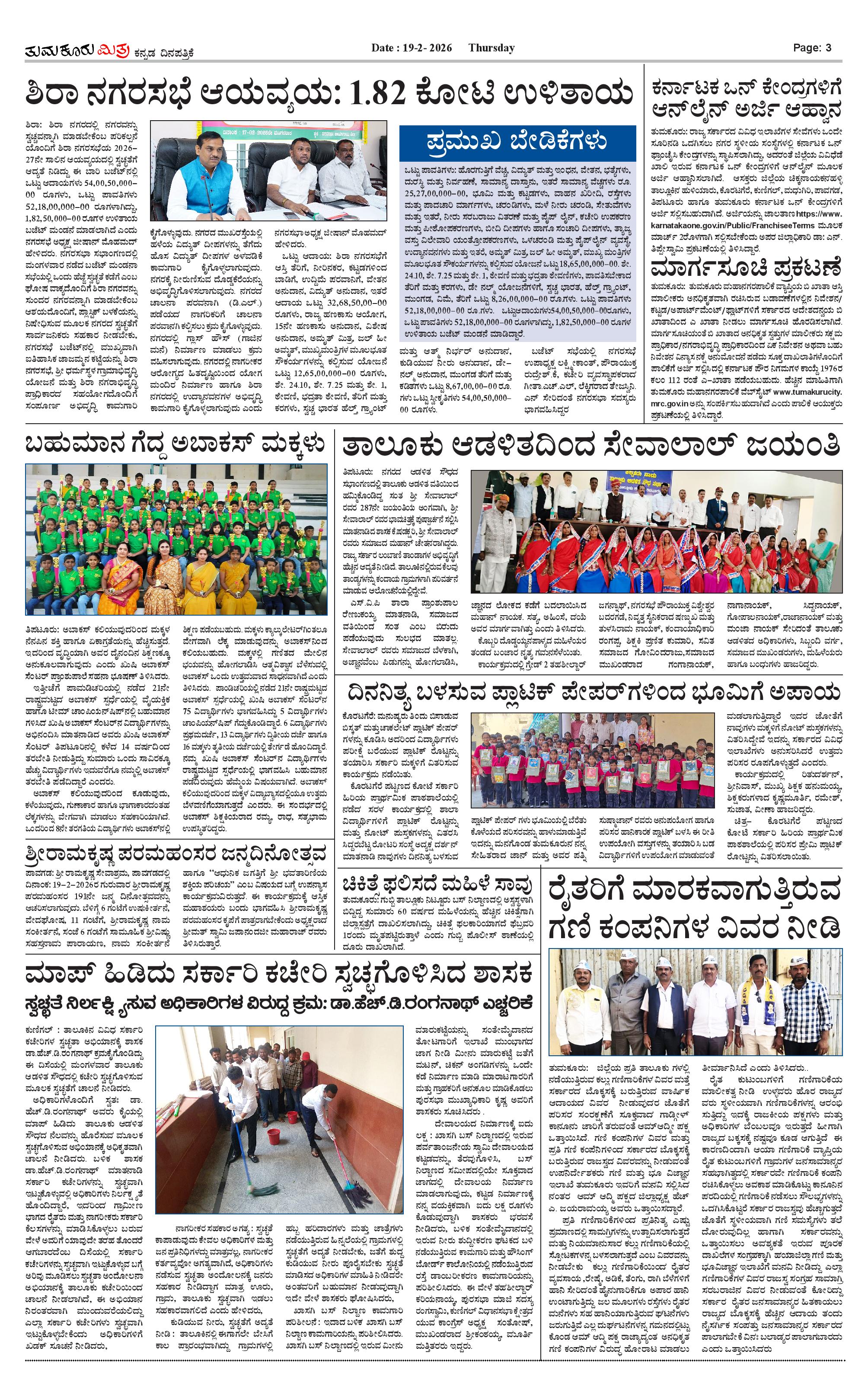 ತುಮಕೂರು ಮಿತ್ರ ಕನ್ನಡ ದಿನಪತ್ರಿಕೆ Page: 3 February 19, 2026 << First << 3 >> Last >> Page 1Page 2Page 3Page 4 × ತುಮಕೂರು ಮಿತ್ರ ಕನ್ನಡ ದಿನಪತ್ರಿಕೆ 1-page-0012-page-0013-page-0014-page-001 << First << 3 >> Last >> 1-page-0012-page-0013-page-0014-page-001 3-page-001