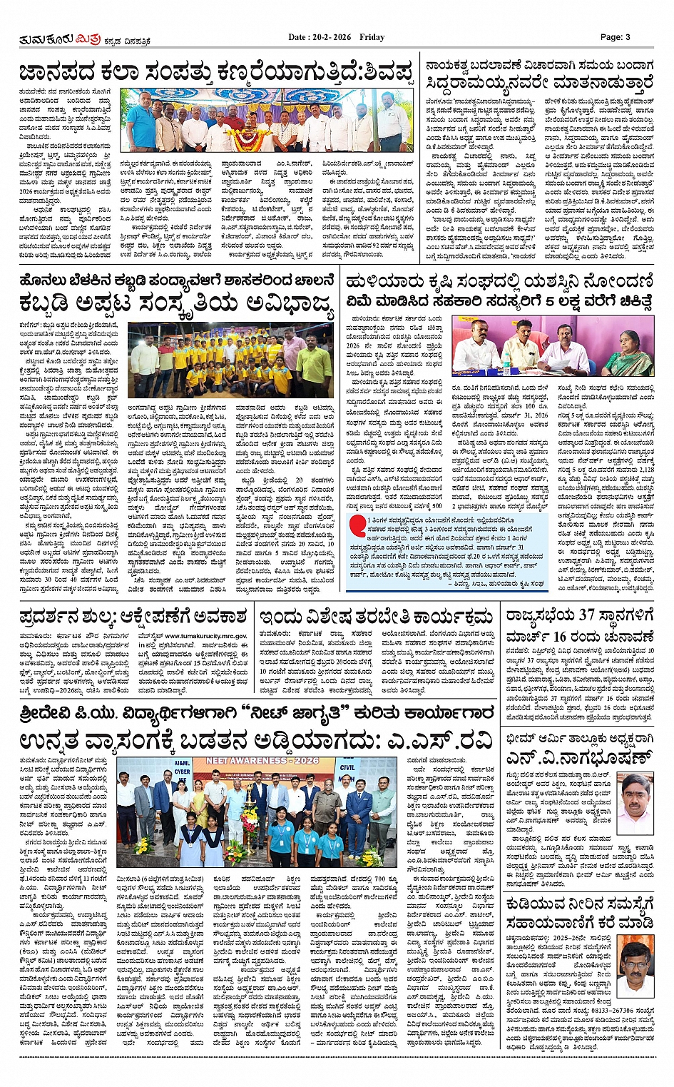 ತುಮಕೂರು ಮಿತ್ರ ಕನ್ನಡ ದಿನಪತ್ರಿಕೆ Page: 3 February 20, 2026 << First << 3 >> Last >> Page 1Page 2Page 3Page 4 × ತುಮಕೂರು ಮಿತ್ರ ಕನ್ನಡ ದಿನಪತ್ರಿಕೆ 1-page-0012-page-0013-page-0014 (1)-page-001 << First << 3 >> Last >> 1-page-0012-page-0013-page-0014 (1)-page-001 3-page-001