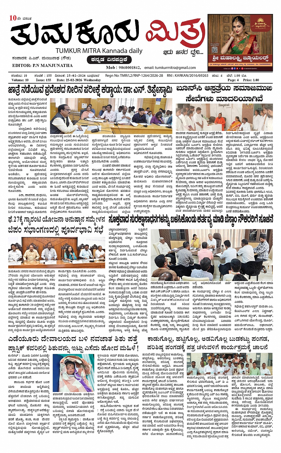 ತುಮಕೂರು ಮಿತ್ರ ಕನ್ನಡ ದಿನಪತ್ರಿಕೆ February 25, 2026 << First << 1 >> Last >> Page 1Page 2Page 3Page 4 × ತುಮಕೂರು ಮಿತ್ರ ಕನ್ನಡ ದಿನಪತ್ರಿಕೆ TUMKUR MITRA-page-001TUMKUR MITRA-page-002TUMKUR MITRA-page-003TUMKUR MITRA-page-004 << First << 1 >> Last >> TUMKUR MITRA-page-001TUMKUR MITRA-page-002TUMKUR MITRA-page-003TUMKUR MITRA-page-004 TUMKUR MITRA-page-001