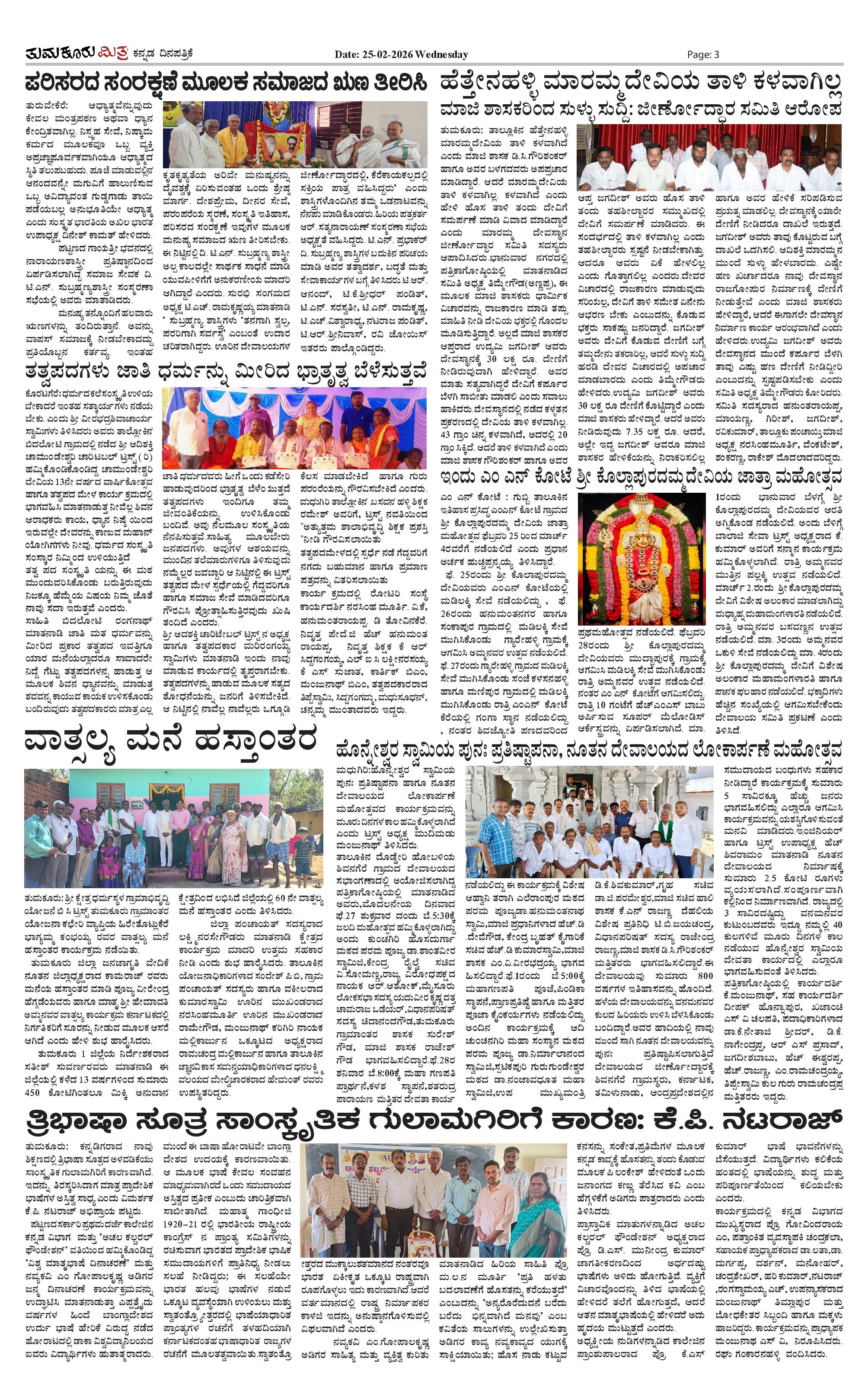 ತುಮಕೂರು ಮಿತ್ರ ಕನ್ನಡ ದಿನಪತ್ರಿಕೆ Page: 3 February 25, 2026 << First << 3 >> Last >> Page 1Page 2Page 3Page 4 × ತುಮಕೂರು ಮಿತ್ರ ಕನ್ನಡ ದಿನಪತ್ರಿಕೆ TUMKUR MITRA-page-001TUMKUR MITRA-page-002TUMKUR MITRA-page-003TUMKUR MITRA-page-004 << First << 3 >> Last >> TUMKUR MITRA-page-001TUMKUR MITRA-page-002TUMKUR MITRA-page-003TUMKUR MITRA-page-004 TUMKUR MITRA-page-003