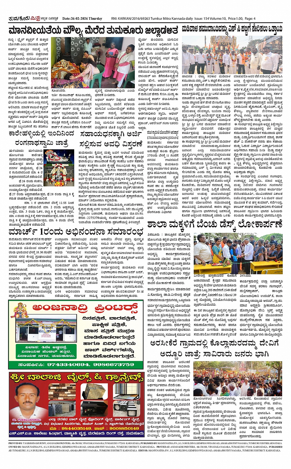 ತುಮಕೂರು ಮಿತ್ರ ಕನ್ನಡ ದಿನಪತ್ರಿಕೆ Page: 4 February 26, 2026 << First << 4 >> Last >> Page 1Page 2Page 3Page 4 × ತುಮಕೂರು ಮಿತ್ರ ಕನ್ನಡ ದಿನಪತ್ರಿಕೆ TUMKUR MITRA (1)-page-001TUMKUR MITRA (1)-page-003TUMKUR MITRA (1)-page-002TUMKUR MITRA (1)-page-004 << First << 4 >> Last >> TUMKUR MITRA (1)-page-001TUMKUR MITRA (1)-page-003TUMKUR MITRA (1)-page-002TUMKUR MITRA (1)-page-004 TUMKUR MITRA (1)-page-004