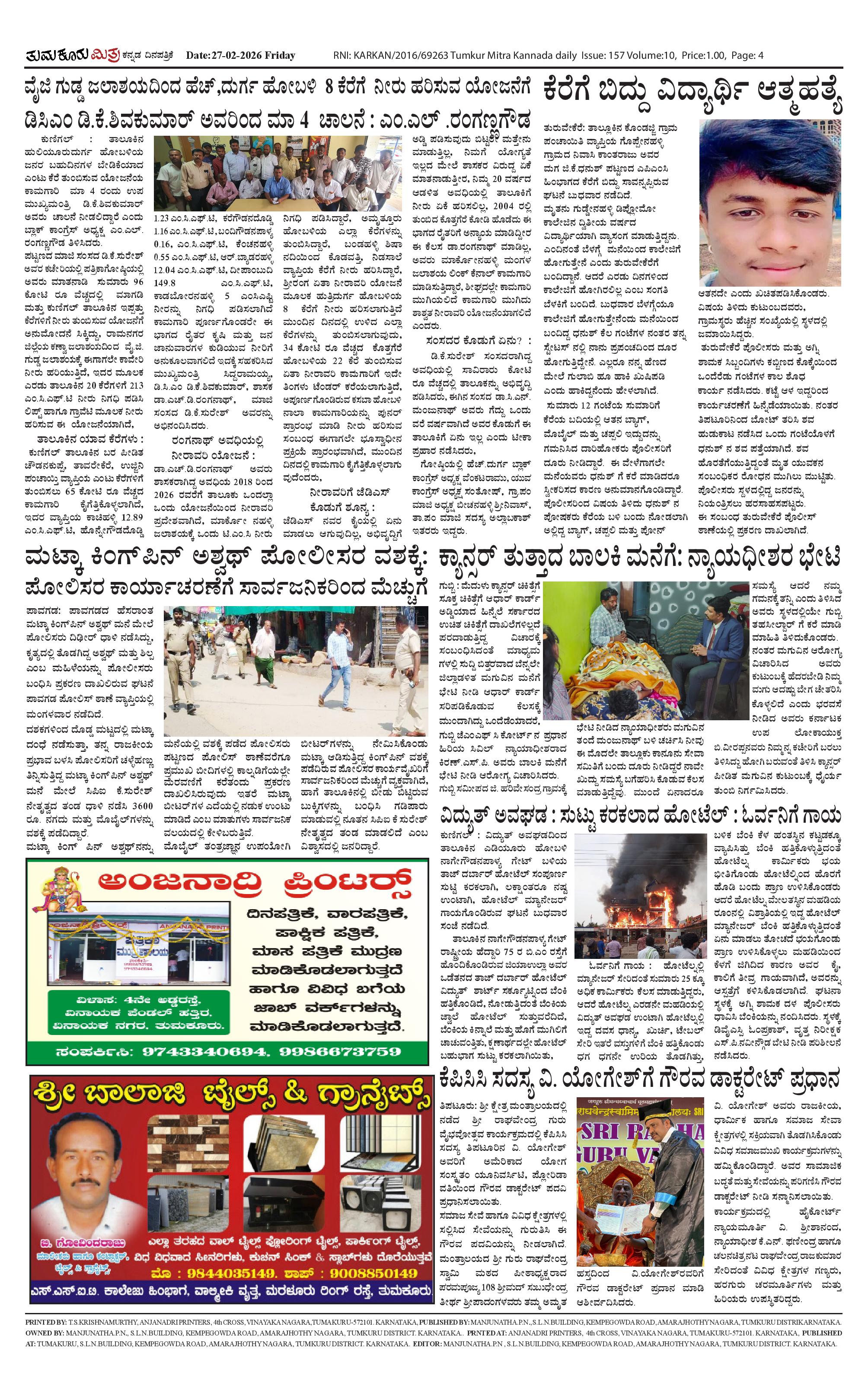 ತುಮಕೂರು ಮಿತ್ರ ಕನ್ನಡ ದಿನಪತ್ರಿಕೆ Page: 4 February 27, 2026 << First << 4 >> Last >> Page 1Page 2Page 3Page 4 × ತುಮಕೂರು ಮಿತ್ರ ಕನ್ನಡ ದಿನಪತ್ರಿಕೆ TUMKUR MITRA-page-001TUMKUR MITRA-page-002TUMKUR MITRA-page-003TUMKUR MITRA-page-004 << First << 4 >> Last >> TUMKUR MITRA-page-001TUMKUR MITRA-page-002TUMKUR MITRA-page-003TUMKUR MITRA-page-004 TUMKUR MITRA-page-004
