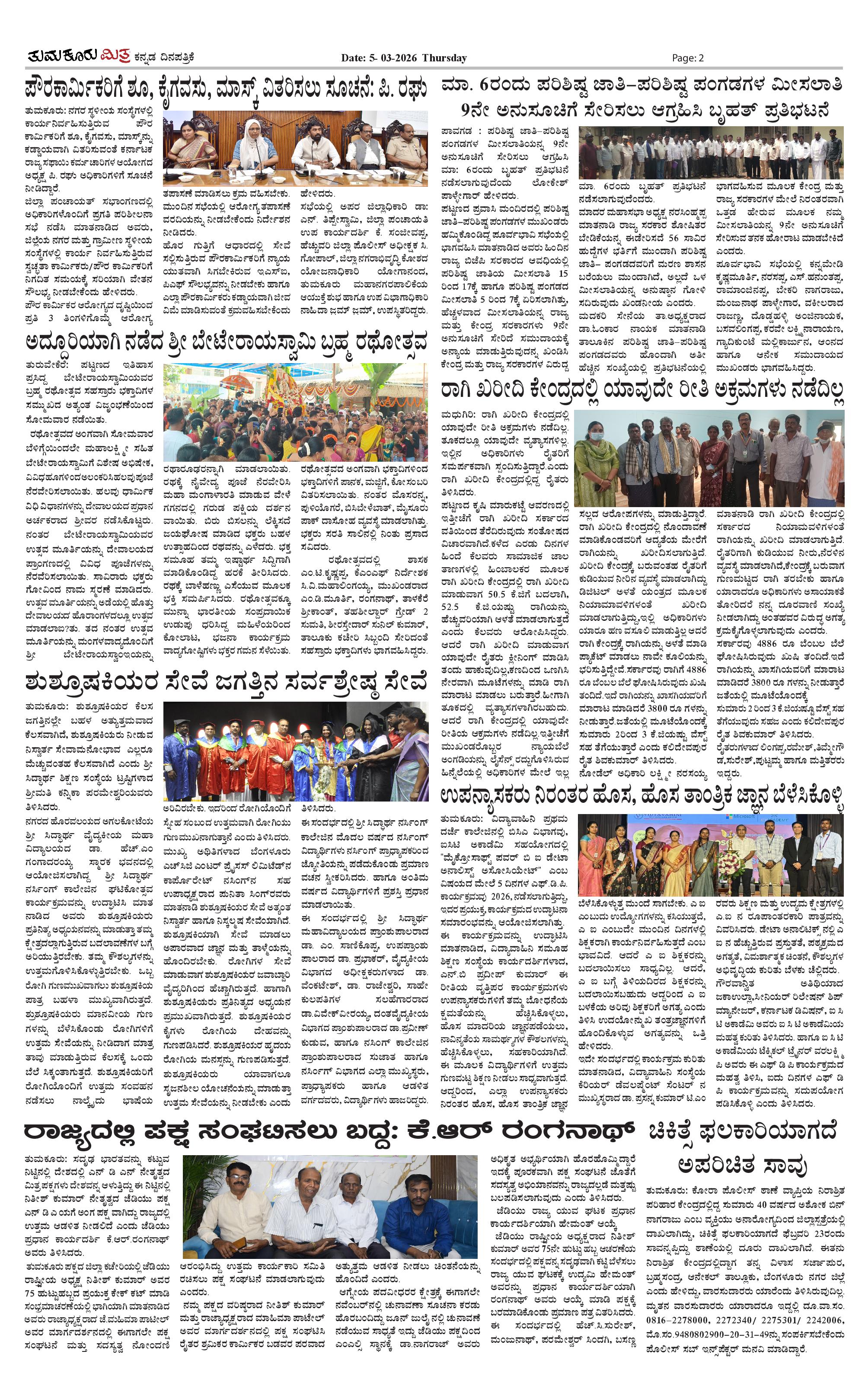 ತುಮಕೂರು ಮಿತ್ರ ಕನ್ನಡ ದಿನಪತ್ರಿಕೆ Page: 2 March 05, 2026 << First << 2 >> Last >> Page 1Page 2Page 3Page 4 × ತುಮಕೂರು ಮಿತ್ರ ಕನ್ನಡ ದಿನಪತ್ರಿಕೆ TUMKUR MITRA (1)-page-001TUMKUR MITRA (1)-page-002TUMKUR MITRA (1)-page-003TUMKUR MITRA (1)-page-004 << First << 2 >> Last >> TUMKUR MITRA (1)-page-001TUMKUR MITRA (1)-page-002TUMKUR MITRA (1)-page-003TUMKUR MITRA (1)-page-004 TUMKUR MITRA (1)-page-002