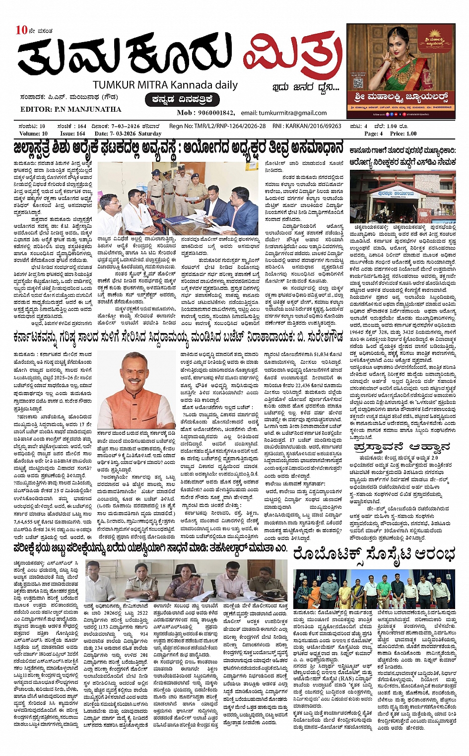ತುಮಕೂರು ಮಿತ್ರ ಕನ್ನಡ ದಿನಪತ್ರಿಕೆ March 07, 2026 << First << 1 >> Last >> Page 1Page 2Page 3Page 4 × ತುಮಕೂರು ಮಿತ್ರ ಕನ್ನಡ ದಿನಪತ್ರಿಕೆ TUMKUR MITRA (1)-page-001TUMKUR MITRA (1)-page-003TUMKUR MITRA (1)-page-002TUMKUR MITRA (1)-page-004 << First << 1 >> Last >> TUMKUR MITRA (1)-page-001TUMKUR MITRA (1)-page-003TUMKUR MITRA (1)-page-002TUMKUR MITRA (1)-page-004 TUMKUR MITRA (1)-page-001