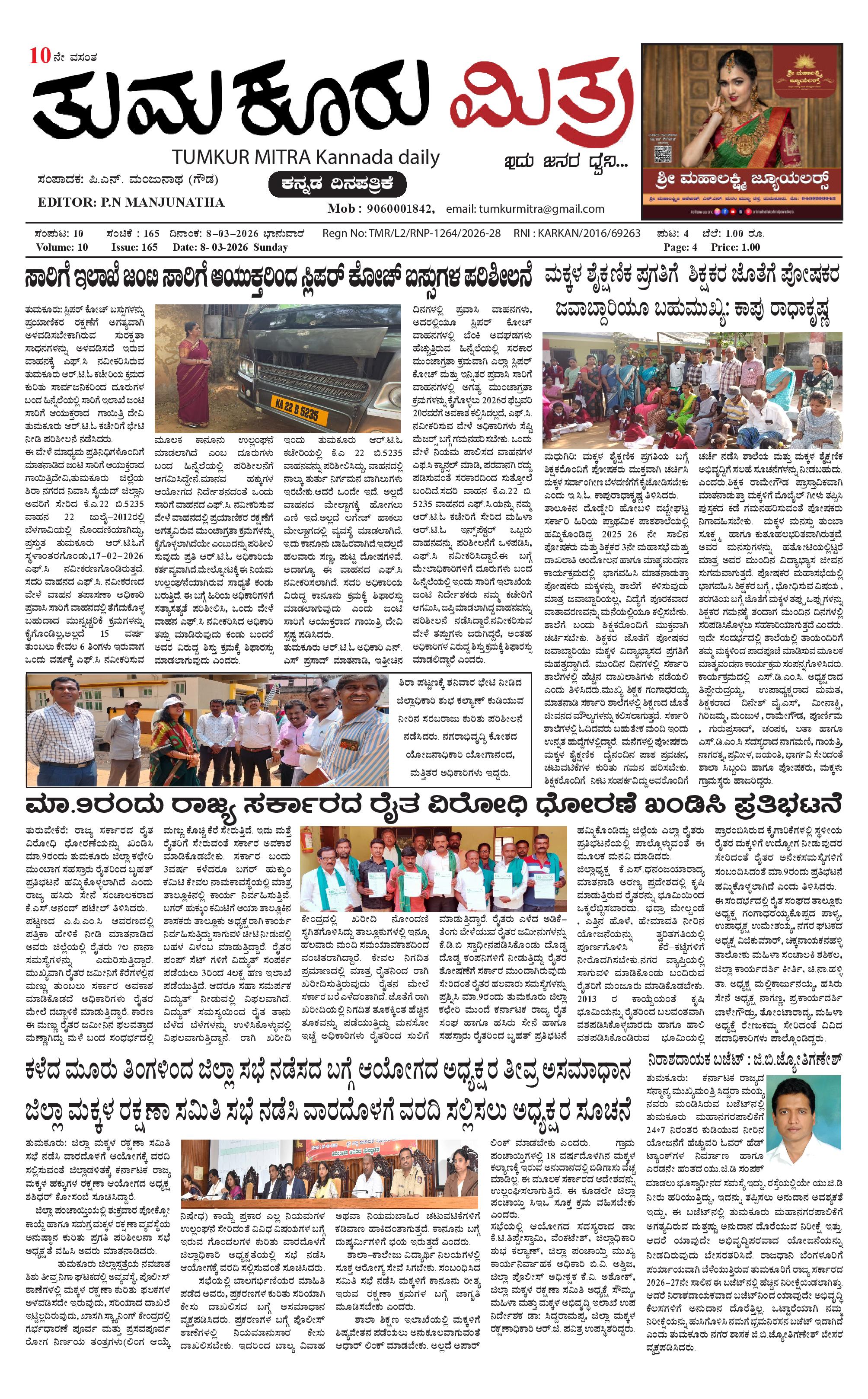 ತುಮಕೂರು ಮಿತ್ರ ಕನ್ನಡ ದಿನಪತ್ರಿಕೆ March 08, 2026 << First << 1 >> Last >> Page 1Page 2Page 3Page 4 × ತುಮಕೂರು ಮಿತ್ರ ಕನ್ನಡ ದಿನಪತ್ರಿಕೆ TUMKUR MITRA-page-001TUMKUR MITRA-page-002TUMKUR MITRA-page-003TUMKUR MITRA-page-004 << First << 1 >> Last >> TUMKUR MITRA-page-001TUMKUR MITRA-page-002TUMKUR MITRA-page-003TUMKUR MITRA-page-004 TUMKUR MITRA-page-001