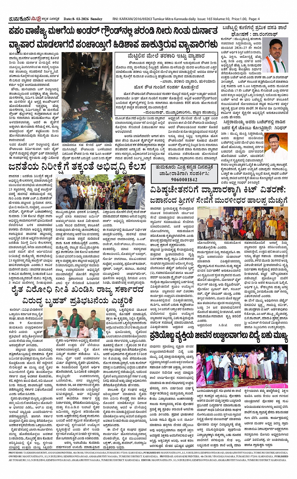 ತುಮಕೂರು ಮಿತ್ರ ಕನ್ನಡ ದಿನಪತ್ರಿಕೆ Page: 4 March 08, 2026 << First << 4 >> Last >> Page 1Page 2Page 3Page 4 × ತುಮಕೂರು ಮಿತ್ರ ಕನ್ನಡ ದಿನಪತ್ರಿಕೆ TUMKUR MITRA-page-001TUMKUR MITRA-page-002TUMKUR MITRA-page-003TUMKUR MITRA-page-004 << First << 4 >> Last >> TUMKUR MITRA-page-001TUMKUR MITRA-page-002TUMKUR MITRA-page-003TUMKUR MITRA-page-004 TUMKUR MITRA-page-004